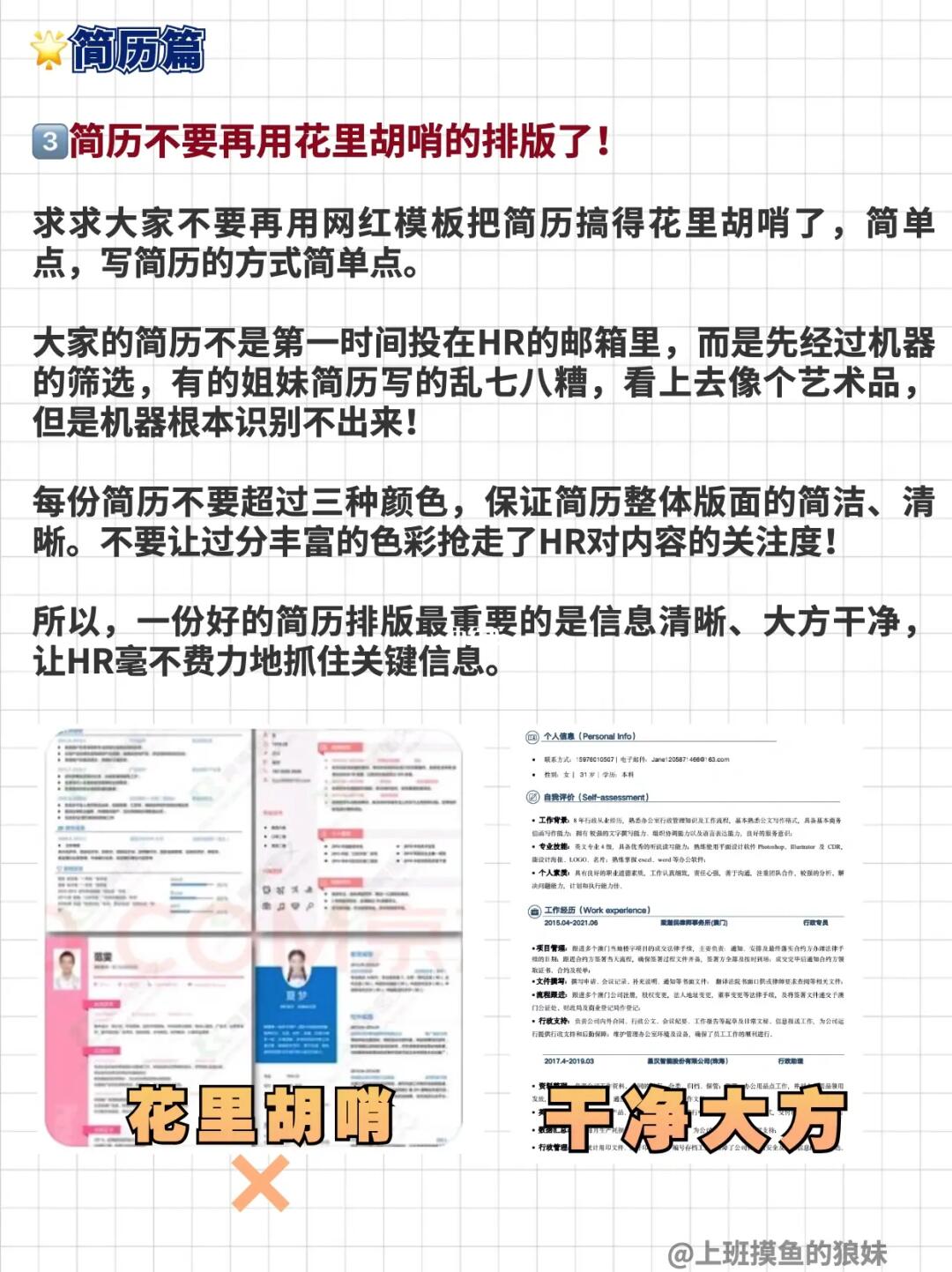 3⃣️简历不要再用花里胡哨的模版了!(见图4)