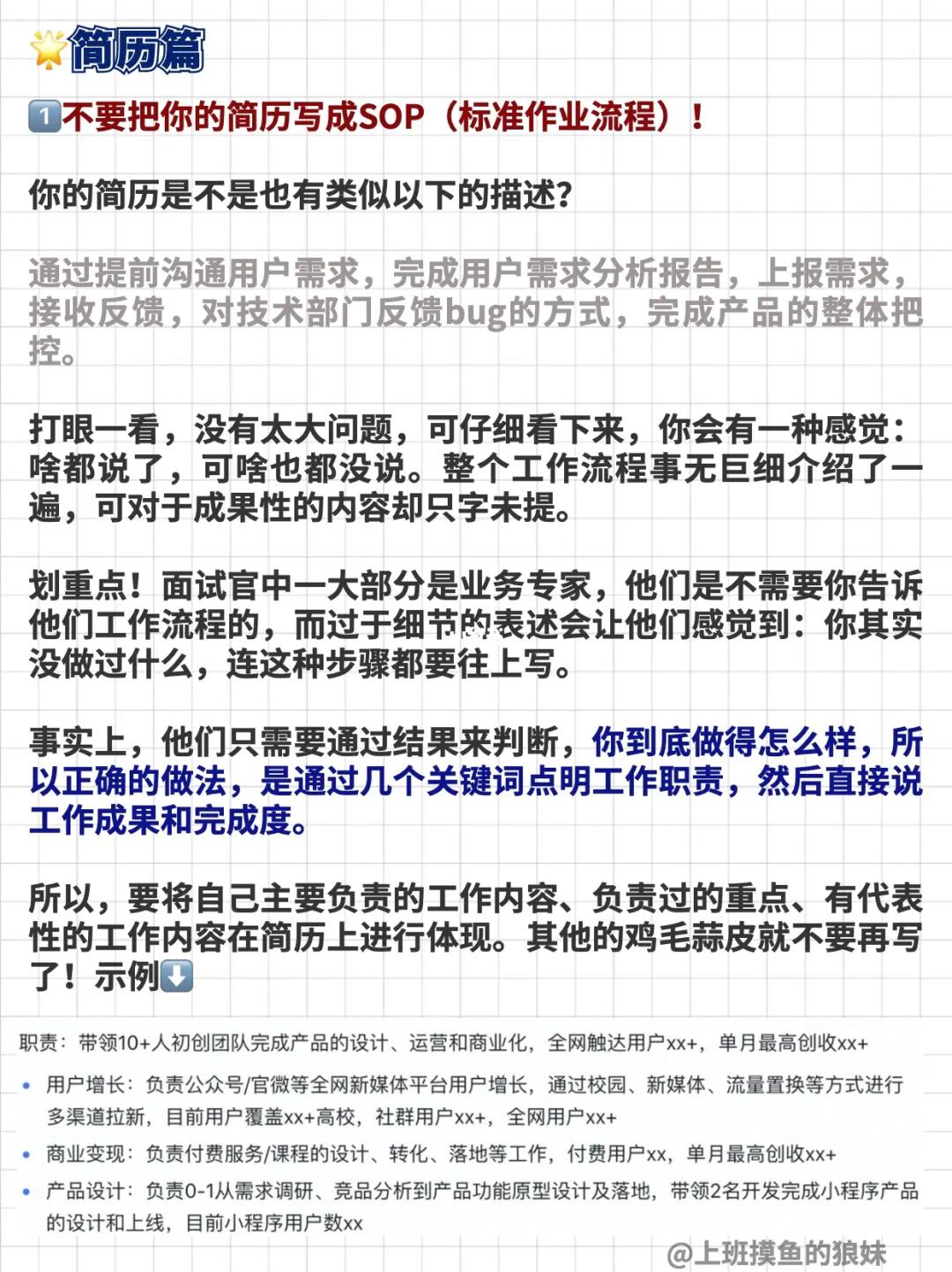 今天狼妹想跟大家总结一下,工作3年以上的姐妹该怎么写【简历】和【求职】