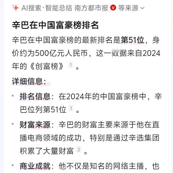 从草根逆袭到身价500亿富豪榜第51名!辛巴肺部严重损伤如95岁老人永久退网真相揭秘商业帝国与健康人生博弈 (来源:综合南方都市报、百度财经频道、创富榜等公开信息整理) 当直播带货的浪潮席卷全国,一个名字始终屹立在风口浪尖——辛巴。2024年《创富榜》揭晓,他以500亿元身家位列中国富豪榜第51名,成为草根逆袭的传奇符号。然而,荣耀背后藏匿着不为人知的挣扎:2025年8月,这位电商巨头因肺部功能严重衰竭宣布永久退网,其商业帝国与健康之间的博弈,揭开了辉煌背后的残酷真相。 辛巴的财富版图堪称商业教科书。据公开资料,其资产核心来自辛选集团约60%的股权,估值达90亿元,加上现金存款35亿、多处豪宅、跑车及自创品牌“棉密码”等,总资产稳定在500亿左右。从母婴代购起家到单场直播销售额破21亿,他仅用数年时间改写了电商行业的游戏规则。 然而,商业帝国的扩张伴随着健康的崩塌。24岁确诊支气管炎的辛巴,常年高强度工作导致肺部功能严重受损,医生坦言其肺部状态“堪比95岁老人”。2025年退网声明中,他坦言:“拼到最后,才发现健康是唯一无法复制的财富。”这番言论引发无数创业者共鸣,有人感叹:“财富换不来呼吸的自由。” 为何辛巴始终未对“破价”对手老葛发起反击?业内分析指出,这或是其深谙流量密码的策略。通过保留竞争对立面,辛巴巧妙维系粉丝群体的凝聚力,刺激“818家族”的消费忠诚度。这种“养寇自重”的商业智慧,既避免恶性竞争损耗,又巩固了自身江湖地位。 退网后的辛选集团已由妻子初瑞雪全面接管。她曾创立ZUZU品牌,年销售额过亿,其稳健风格与辛巴的激进形成互补。粉丝担忧,失去辛巴个人IP的辛选能否延续神话?但数据显示,集团供应链与数字电商板块已形成闭环,或许这才是辛巴敢“放手”的底气。 辛巴的争议从未停歇。“假燕窝事件”等产品质量风波一度将其推至舆论悬崖,但他总能在危机中重整旗鼓。有消费者直言:“他的直播间像一场心理战,让人明知有风险却忍不住下单。”这种精准拿捏人性需求的能力,正是其商业帝国的根基。 从黑龙江小城走出的辛巴,曾因贫困辍学,摆过地摊、做过代购。他的崛起轨迹暗合了时代机遇:快手平台的流量红利、国货消费浪潮、粉丝经济爆发……每一步都踩中风口。但光环之下,他多次公开表示:“财富只是工具,不该是人生的目的。” 健康危机成为辛巴事业的转折点。有医学专家指出,直播行业的高压环境对主播身心消耗极大,辛巴的案例为从业者敲响警钟。网友“追梦人”评论:“他用500亿换不来一口顺畅的呼吸,我们普通人又该追求什么?”这一提问引发数千条热议。 尽管退隐,辛巴的商业遗产仍在持续发酵。他推动的“新国货计划”与华为、格力等品牌的合作专场屡创销售纪录,其供应链管理模式被多家企业效仿。有分析师认为:“辛巴的成功在于将流量转化为信任经济,这才是直播电商的本质。” 对于未来,辛巴曾在采访中透露:“资产可以捐给国家,但人生需要重新定义。”这种超脱财富的价值观,与其昔日“战场”上的彪悍形象形成鲜明对比。或许,放下话筒的他,正在寻找比500亿更珍贵的答案。 结语:辛巴的故事是一面镜子,照见时代洪流中个体的挣扎与选择。当健康与财富的天平倾斜,多少人能如他一般果断转身?其商业神话或许会被超越,但对人生价值的思考,将长久叩击人心。 草根逆袭身价500亿富豪榜第51名 辛巴 辛巴肺部严重损伤 退网真相财富与健康直播电商 真相揭秘商业帝国 健康人生搏弈