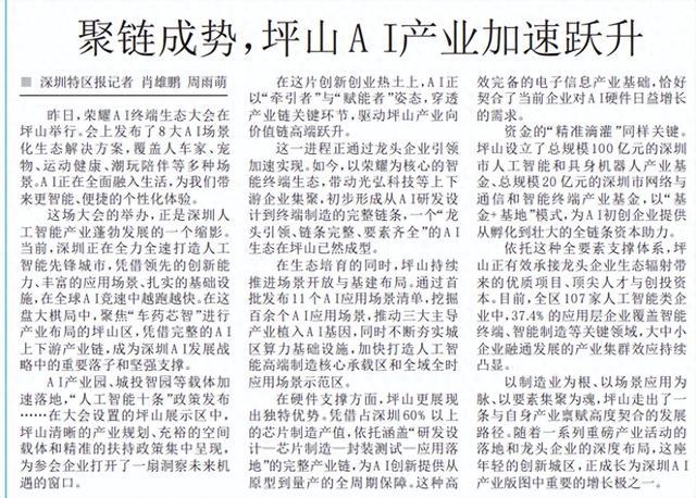 [深圳特区报]聚链成势,坪山AI产业加速跃升