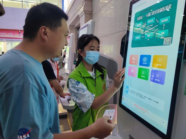 除了这支特殊的志愿服务队,医院在各楼层均设有志愿服务台,为患者提供解答、帮助以及自助机操作指导等各项服务。