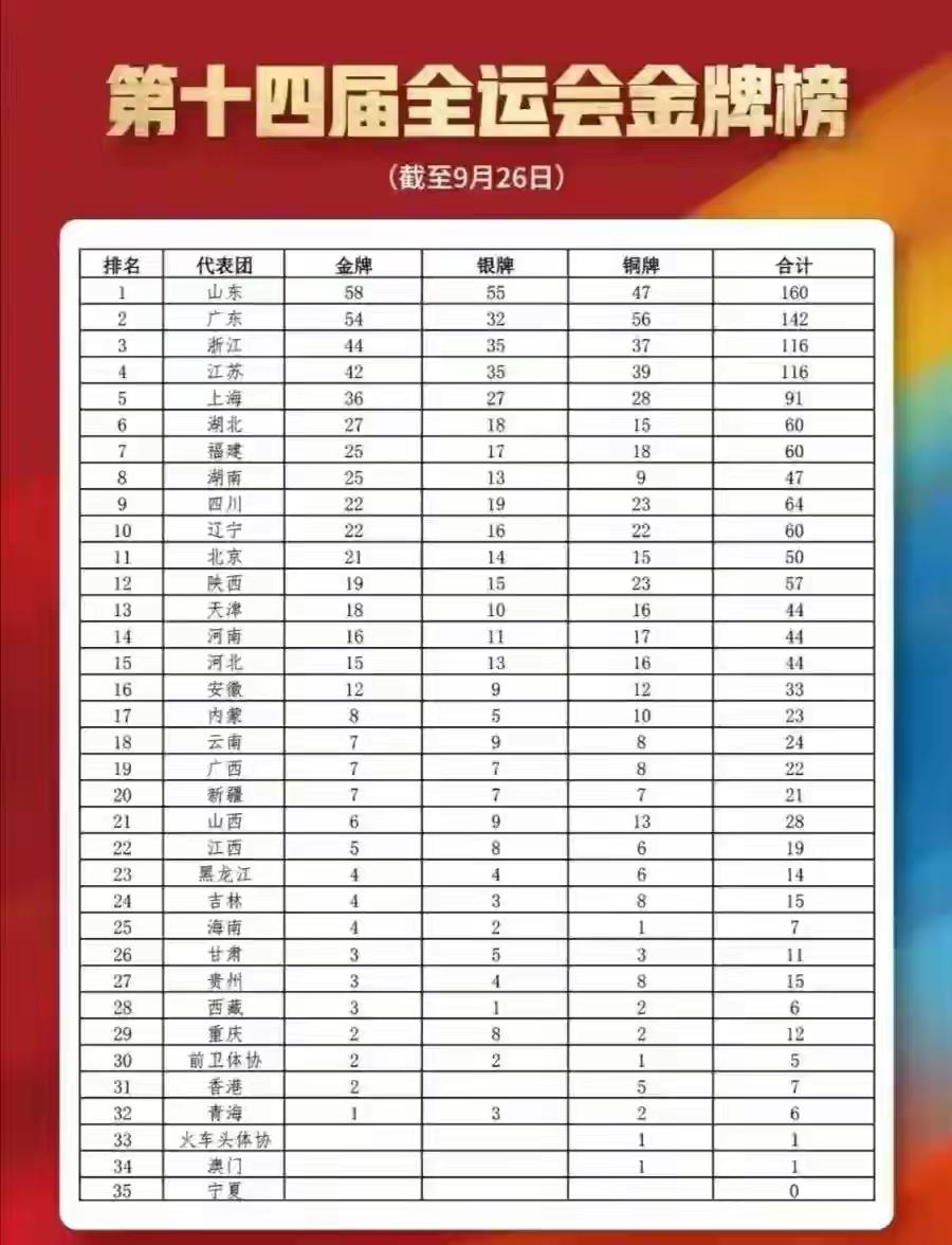 全运会山东开始发力,又现山东一省独立抗衡南方的局面。 上一届全运会,北方省份全面衰落。排名前十的北方省份只有山东和辽宁,而辽宁还是第十。 但山东以一己之力独抗整个南方,最终山东拿到了第一,保住了北方最后一丝尊严。 本次粤港澳全运会,广东磨掌擦拳,试图用东道主之利压山东一头。 前几天比赛,山东确实发挥不好,一度掉到了广东、江苏、浙江之后,排名第四。 就在网上认为这次山东不可能再争第一了的时候,山东主力军团抵达,以泰山压顶之势横扫赛场。短短几天的时间,奖牌榜就拉开了广东队一半了。 看样子,本次全运会,北方各省依然表现不佳,估计辽宁今年进不了前十了。毕竟经济好了才能支撑体育的发展。 所以说,今年全运会,依然是山东独力抗衡整个南方。或许今年全运会南方全面压制北方,但山东就像一座巍峨的大山,横贯在南方各省前面。