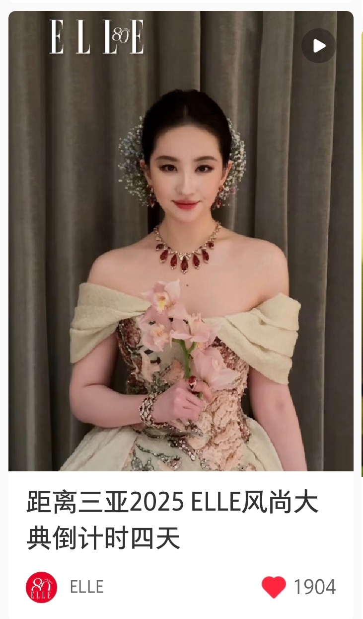 ELLE各平台账号大早上第一条就发了昨晚刘亦菲在vogue上给自己录的庆生ID这