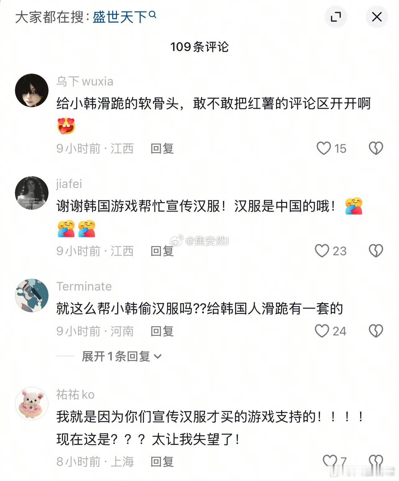盛世天下在🇰🇷网带汉服的词条被几个棒子🐴了,然后盛世天下就把这个帖子给删了