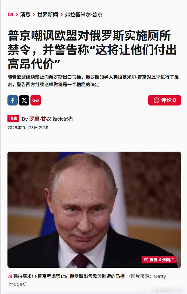 🔻普京嘲讽欧盟对俄罗斯实施厕所禁令,并警告称“这将让他们付出高昂代价”