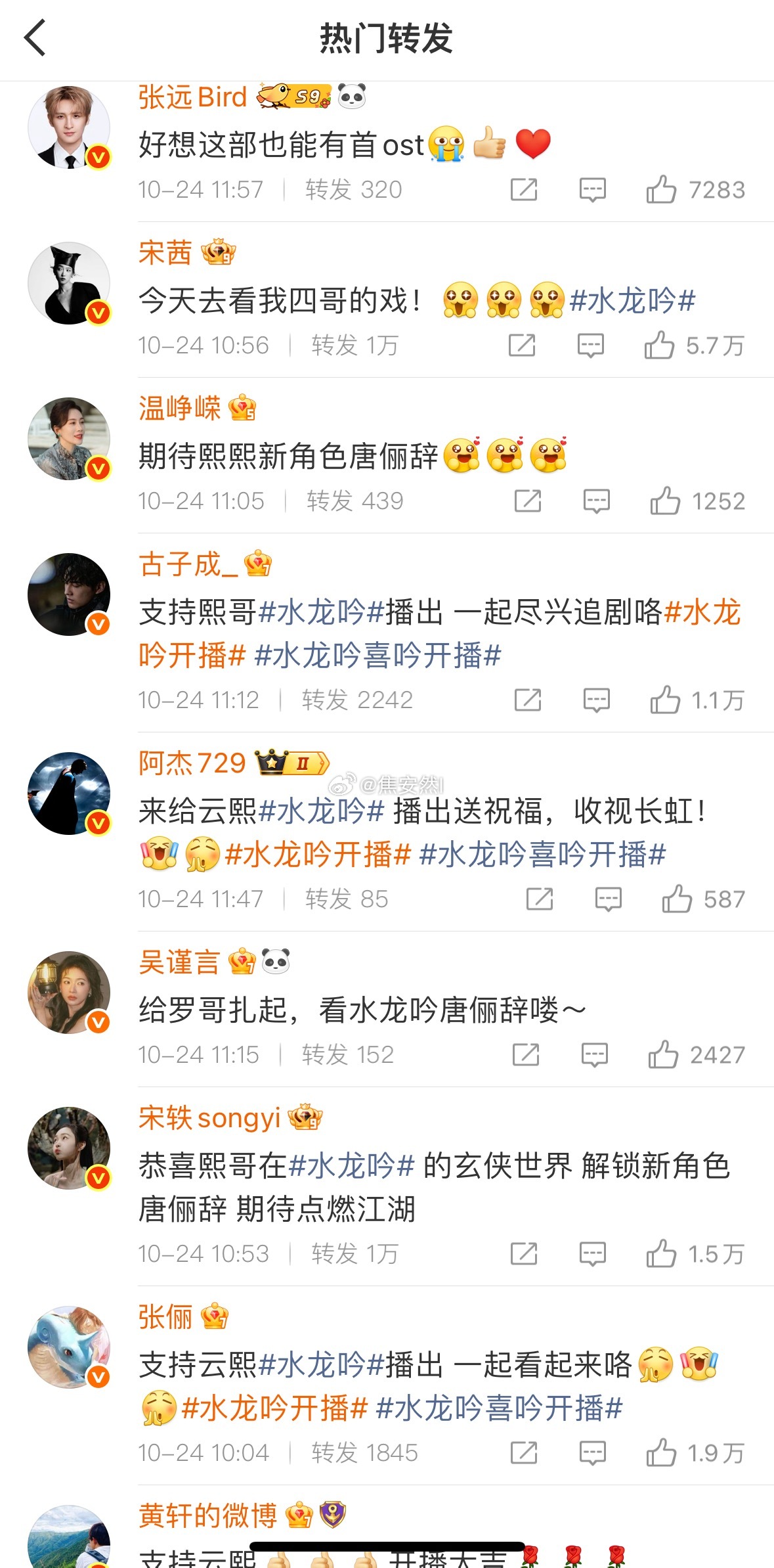 罗云熙今天摇了好多人杨紫,陈都灵也转了还有黄晓明,丞磊,黄俊捷