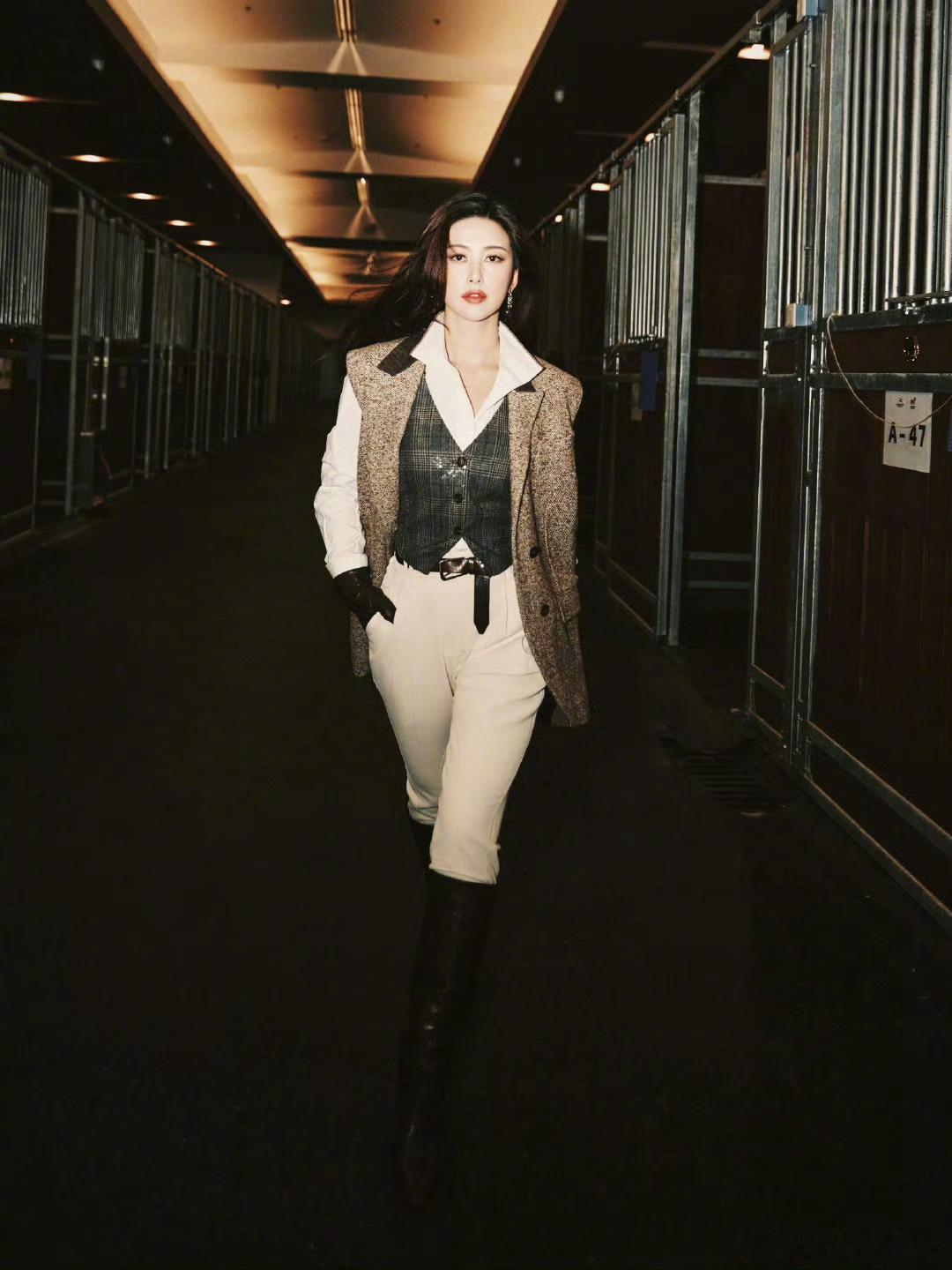 朱珠马场晚宴穿对了被朱珠的马场晚宴造型惊艳到!一身骑马装look又复古又有旷野风情,走路都带风,这才是真正的衣品在线,太会穿了!