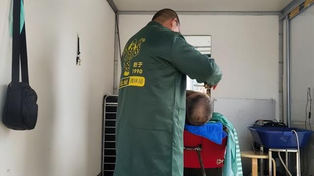 车内的空间不大,一位正在理发的顾客倒不介意。