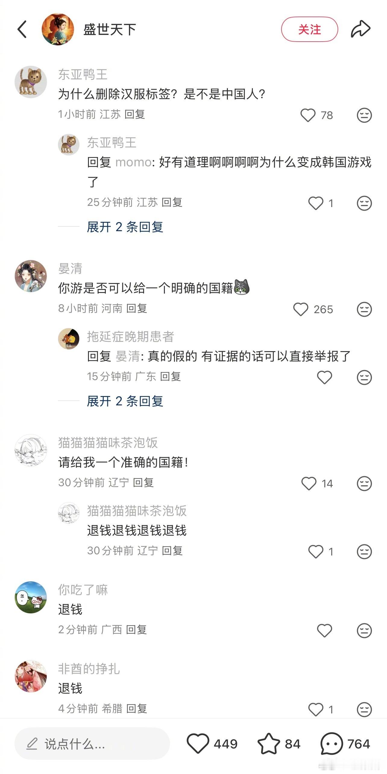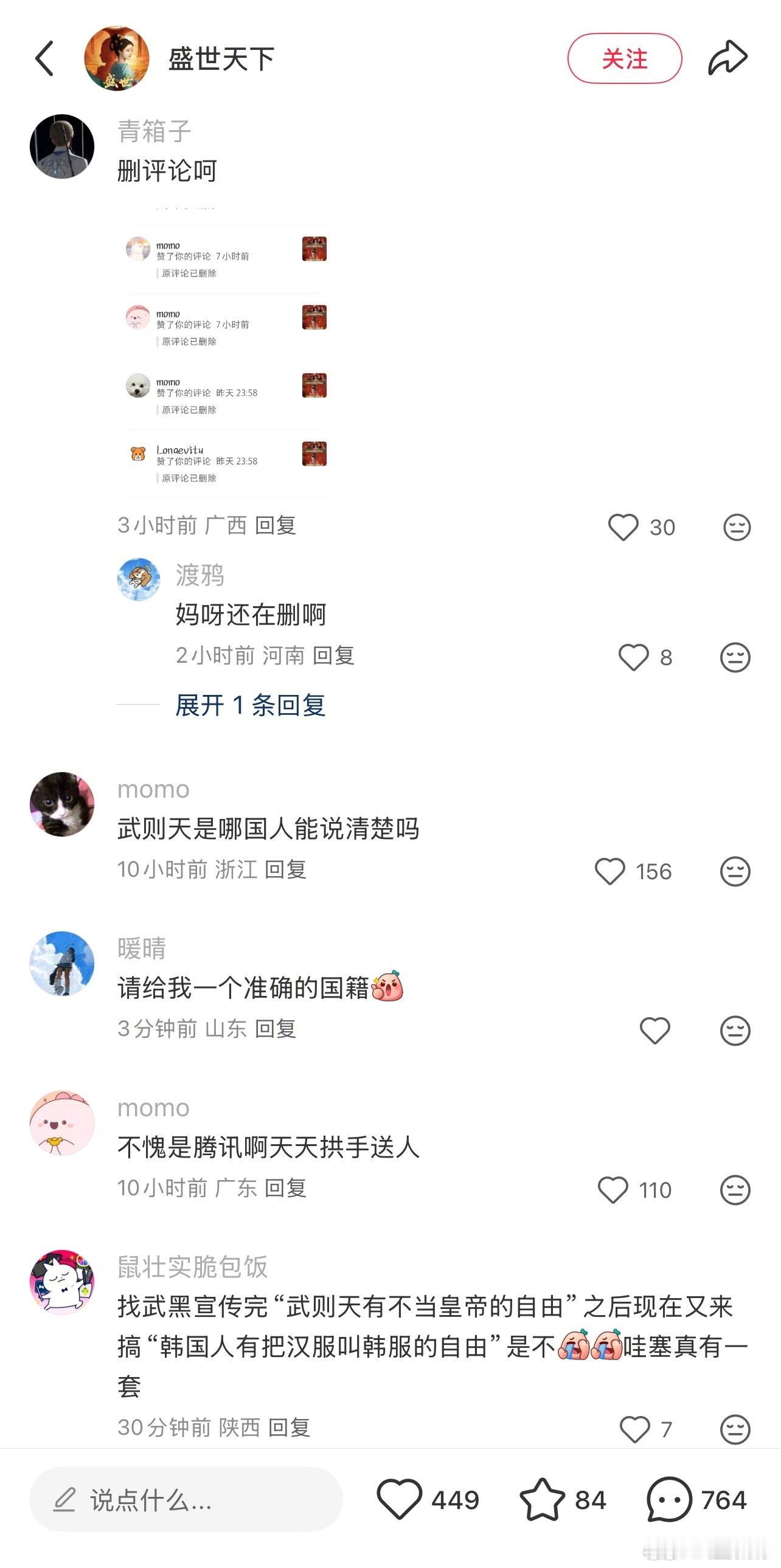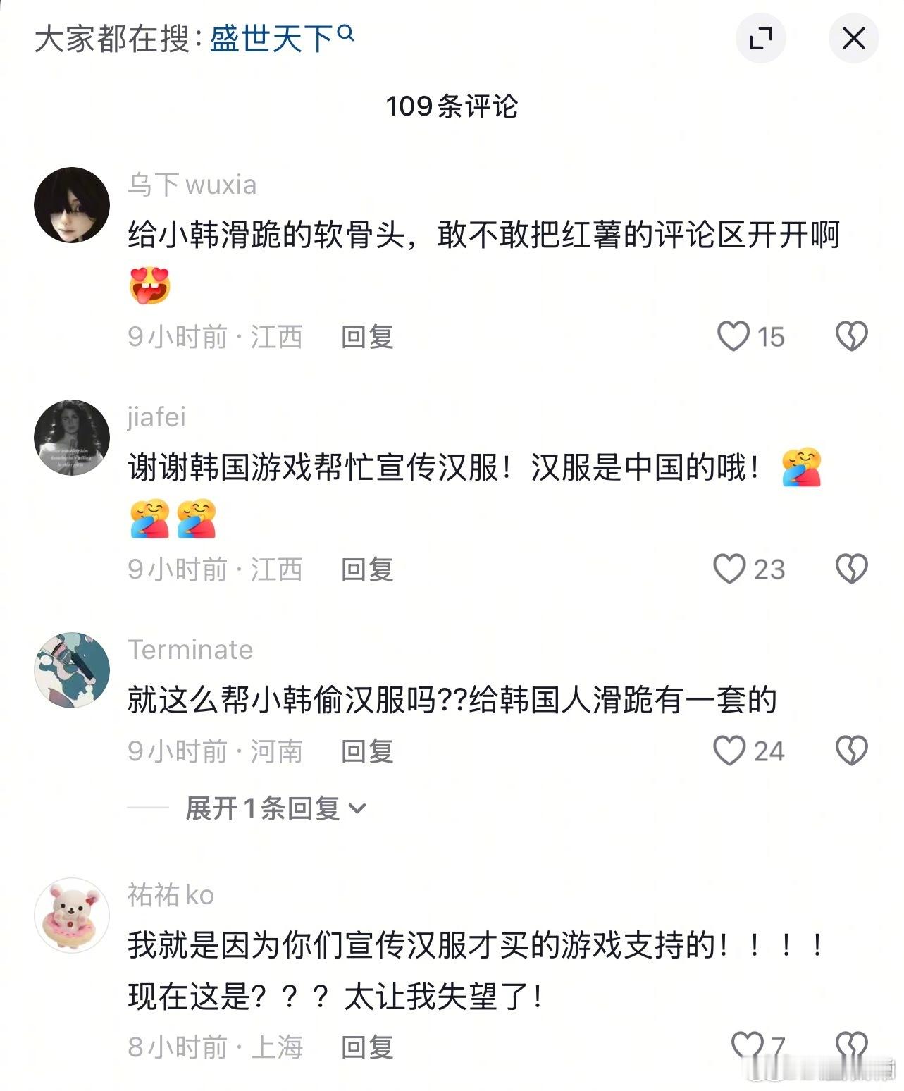 《盛世天下》官方在推特发帖带了汉服tag,被🇰🇷人骂偷韩服,随后官方把汉服tag删了,自己家的东西你也滑跪,你们知道这种行为代表什么吗[费解]