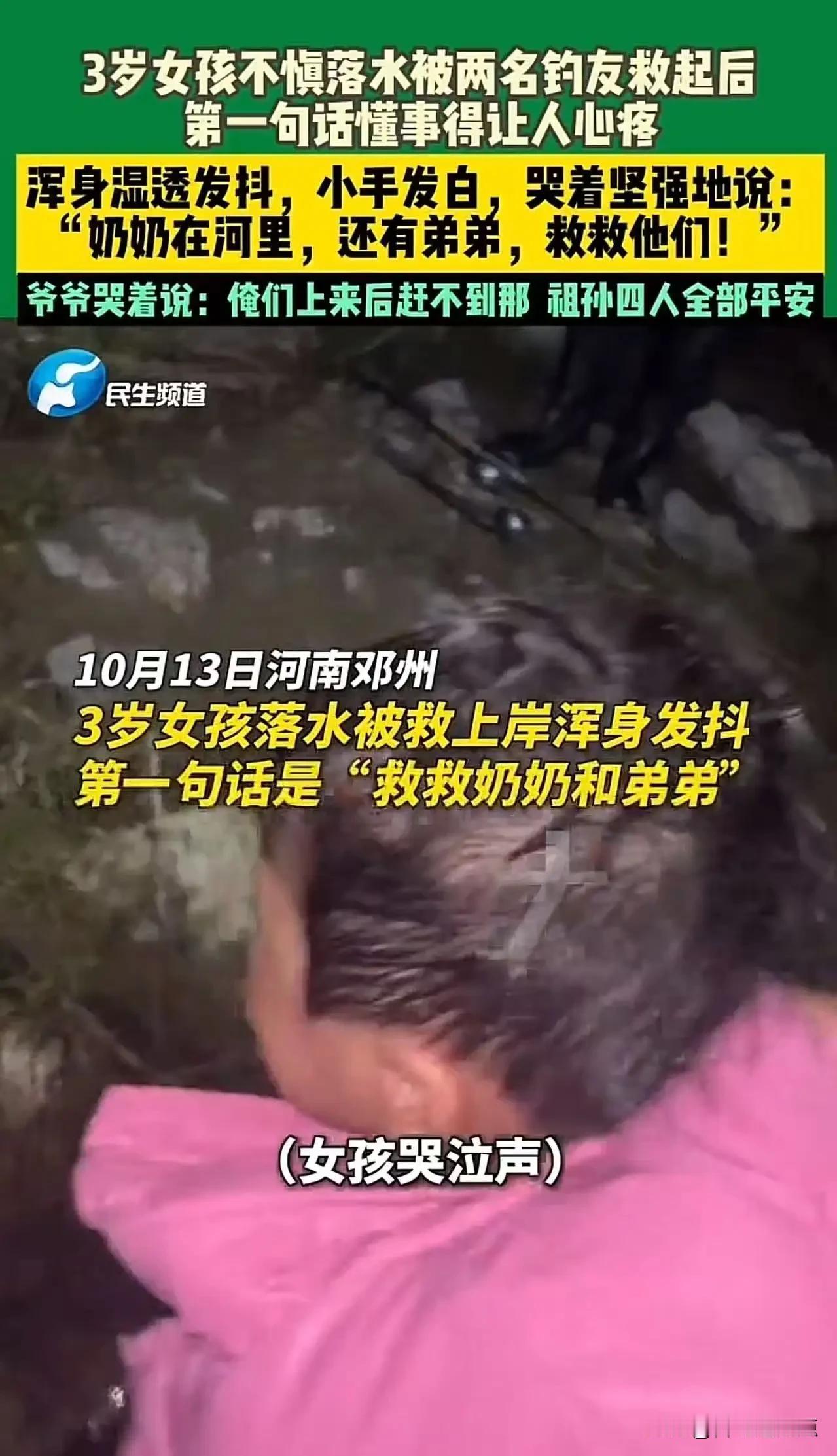 五岁女孩掉河里3公里奇迹生还!警!这场突如其来的“奇迹”似乎只是刚刚开始上演的序幕。面对这个年仅五岁的女孩,她的眼中没有恐惧,只有燃烧的希望和浓浓的亲情。就在她哭喊的瞬间,现场的钓友们都被这份纯真的情感刺痛了心灵。谁能想到,一个小小的生命,竟能在绝境中展现出如此惊人的勇气与坚韧? 这不禁让人深思:在这个快节奏、竞争激烈的社会里,我们是否还记得那份最纯粹的善良?那份在危难时刻,愿意为他人奋不顾身的温暖?这位五岁的女孩,用她的行动告诉我们:生命的价值,不在于年岁,而在于那份不屈不挠的精神;而爱与责任,才是真正能穿越风雨的力量。 现场的钓友们赶紧报警,救援队迅速赶到。与此同时,整个网络瞬间被这感人一幕点燃。有人感叹:“孩子的勇气,真是超乎想象。”有人质疑:“为什么会发生这样的悲剧?”然而,更多的人开始反思:我们是否在日常生活中,忽视了那些最基本的关爱与责任?是否在追逐梦想的同时,忘记了身边最需要我们的人? 这个故事的背后,是对人性最深层的洞察。面对危难,普通人展现出的那份勇敢;在绝望中依然坚持的那份信念,都是我们每个人心中那份“善良”的最佳写照。它激励着我们:无论身处何种境地,只要心存善念,就有穿越黑暗的力量。 或许,这个五岁的女孩只是一个普通的孩子,但她用行动告诉我们:生命的意义,在于那份不放弃的坚持和对亲人的深情。这不仅是一场救援,更是一堂人生大课——在困难面前,勇敢站出来,伸出援手,因为你永远不知道,下一秒会不会成为别人的救命稻草。 让我们从这场意外中汲取力量,用心去关爱身边的每一个人。因为,正是这些微小的善意,汇聚成了社会最温暖的河流。愿我们都能像那位勇敢的小女孩一样,无畏于风雨,用爱点亮他人的生命,让这个世界变得更加美好。5岁女童溺水 路遇小孩坠河