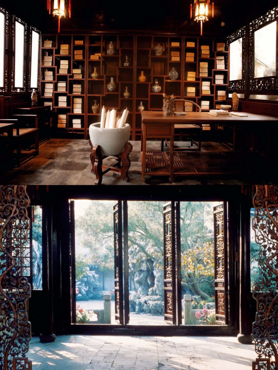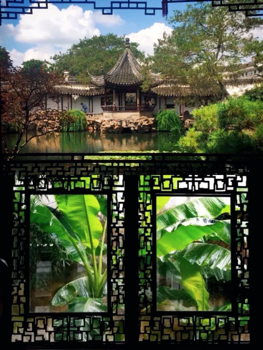 ✅ 殿春簃芭蕉窗:绿意窗景配素色衣衫,氛围感直接拉满~
