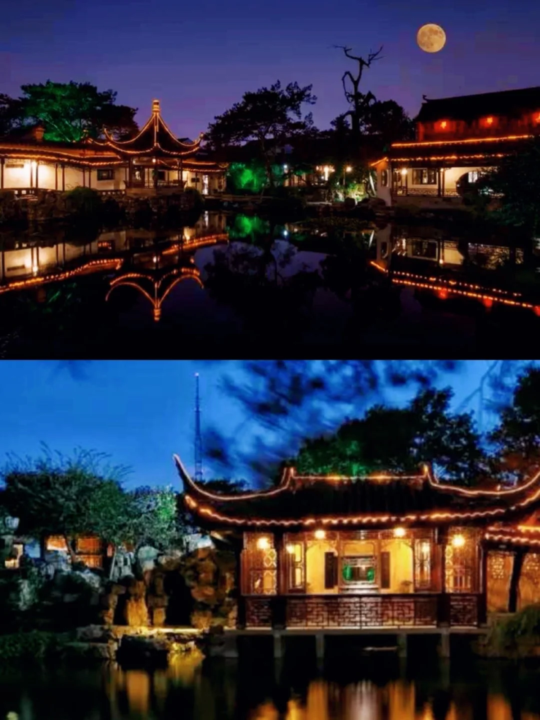 ✅ 月到风来亭廊桥:夜游提灯背影+水面灯影 ~