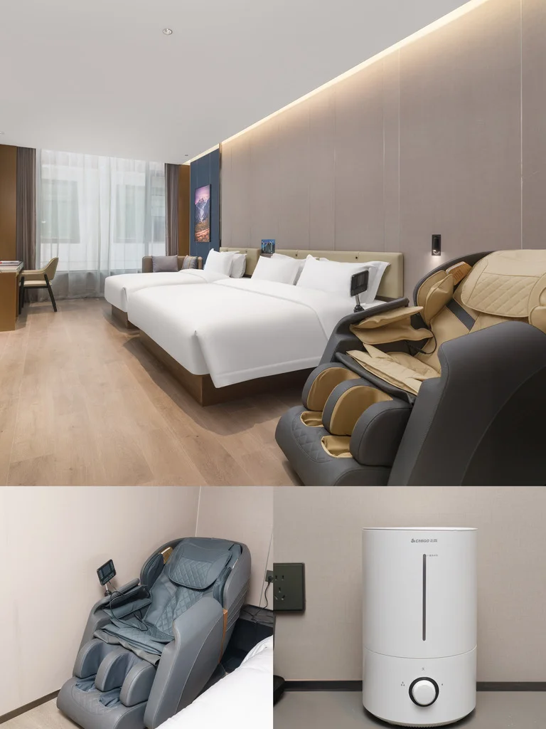 🛏️房间惊喜:房间配24小时弥散式制氧机,超安心~同时还配备了零压床垫,超舒适~房间内还有按摩椅,晚上回来超享受~