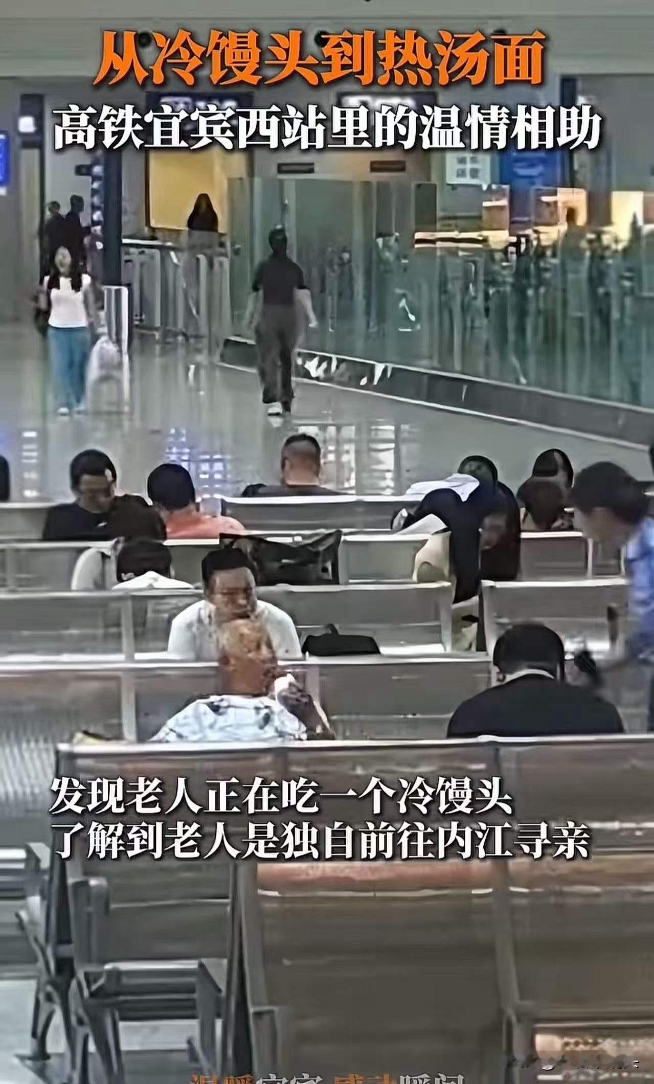 “ 这个高铁站火了,工作人员的一番做法,让老人忍不住跪了在地上……”宜宾西站,工作人员看到一位75岁老人在候车大厅啃冷馒头,一番暖心举动,让老人热泪盈眶,跪地感谢!网友:看到老人跪下的时候,眼泪不争气的流了下来! 这则报道生动地展现了宜宾西站工作人员的人文关怀,令人感动不己。对于一位75岁的老人来说,长途旅行确实考验身心,而工作人员的细心照料不仅缓解了老人的疲惫,更带来了深深的温暖。老人蹲在候车大厅啃冷馒头,或许是身体的疲惫和一时的困顿,但他的感谢之情通过跪地表达出对社交中温情的极大认同与感激。 这件事恰恰彰显了公共服务中人性化的关怀,提醒我们在快节奏的社会中,别忘了那些需要帮助的个体。这种善举不仅温暖了当事人,也激励着更多人在日常生活中传递善意、彰显善良,让社会变得更加温馨和有爱。 网友们的感动反应证明了善良的力量,也让我们明白:每一个小小的善行,都能汇聚成温暖的洪流。希望未来还能看到更多像这样的善举,让社会充满善意与正能量,成为我们共同努力的目标。 火车站的椅子 高铁站老人 宜宾火车站