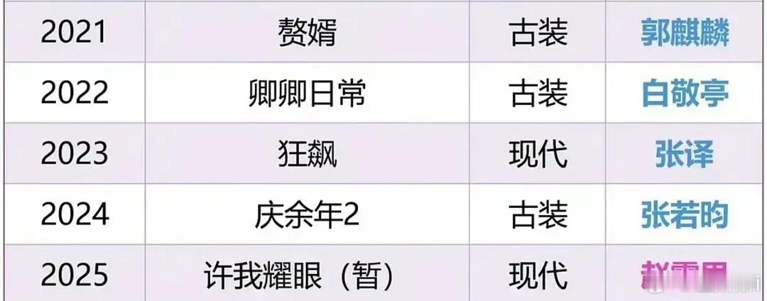 赵露思许我耀眼播出28天云合集均全平台年冠!!赵露思也是近五年来唯一女一番年冠军