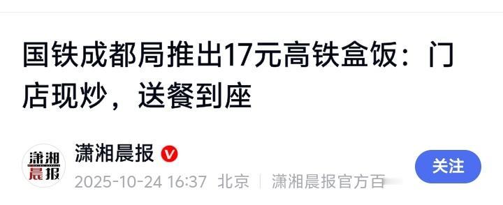 成都铁路局放大招!17元现炒高铁盒饭引爆全网,网友狂赞:这才是人民铁路的良心! 近日,国铁成都局推出两款仅售17元的高铁盒饭,瞬间刷爆社交平台。门店现炒、送餐到座的服务,不仅让乘客吃上热乎饭,更让无数网友直呼“铁路终于接地气了”!这一举措背后,究竟是怎样的民生温度? 平价盒饭的“锅气”,唤醒旅途中的家常味。此次推出的套餐以经典老式蛋炒饭为基底,搭配川式小炒肉或姜爆甜椒鸡丝,辅以清爽时蔬。每一份均由门店现场炒制,锁住“锅气”,用家常味道治愈奔波中的疲惫。有乘客感叹:“一口下去,像极了妈妈的手艺!” 科技赋能点餐,高铁服务再升级 通过铁路12306App或扫描座椅二维码,乘客只需动动手指,美食便能精准送达座位。从匹配供餐站到实时追踪订单,科技让高铁服务更智能、更人性化,真正实现了“指尖上的便捷”。 网友热议:17元盒饭为何引爆情感共鸣? “早就该如此了!”“这才是为人民服务!”……评论区一片沸腾。平价盒饭看似小事,却戳中了大众对“公平消费”的渴望。以往高铁餐食价格偏高,如今17元的亲民定价,让普通旅客感受到了被尊重的温暖。 对比过去:高铁餐饮的“平民化转身” 曾几何时,高铁餐食因价格高、选择少被诟病为“奢侈消费”。如今,从全麦三明治到川味套餐,从西式简餐到传统面食,多元化的惠民选择折射出铁路服务从“商业思维”到“用户思维”的转变。 背后逻辑:铁路服务的“初心回归” 铁路作为公共交通工具,本质是服务大众。17元盒饭的推出,不仅是市场竞争的必然,更是铁路系统对“便民惠民”初心的回归。用网友的话说:“铁路终于想起了自己的使命!” 未来展望:平价服务能否成为常态? 此次平价盒饭的试点,若能在全国推广,或将彻底改变高铁“吃不起饭”的刻板印象。更多人期待,这类惠民举措能延伸至更多领域,让公共交通真正成为“人民的幸福线”。 结语:一碗盒饭的温度,照见的是时代进步,17元的高铁盒饭,看似微不足道,却承载着民众对公平、便捷、温暖生活的向往。它告诉我们:真正的服务,永远始于对普通人需求的洞察与尊重。 (来源:封面新闻) 成都 铁路局 17元现炒高铁盒饭引爆全网 高铁餐饮革新 民生服务升级