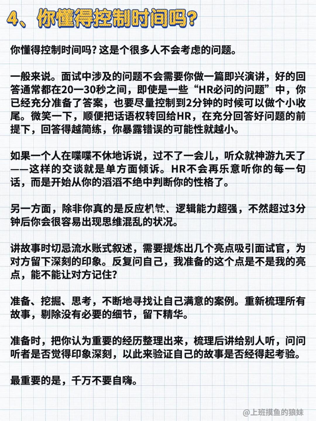 面试回答问题要讲逻辑性,大家都是职场人,时间很宝贵,不要流水账一样拉家常。