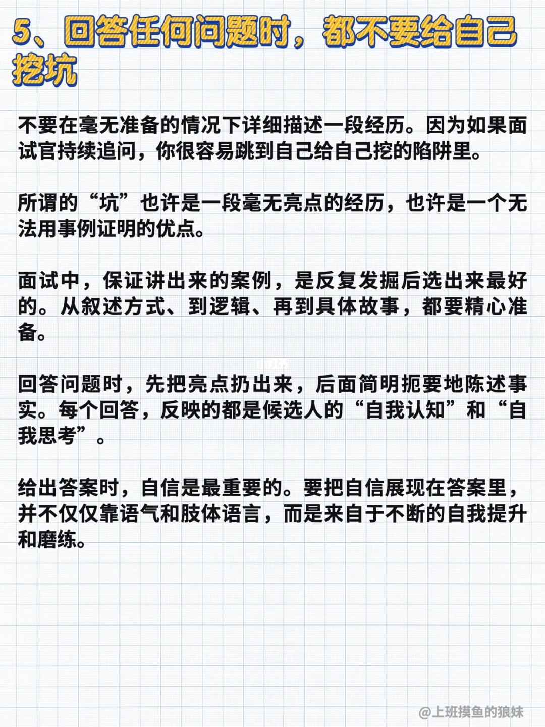 5⃣️回答任何问题时候,都不要给自己挖坑