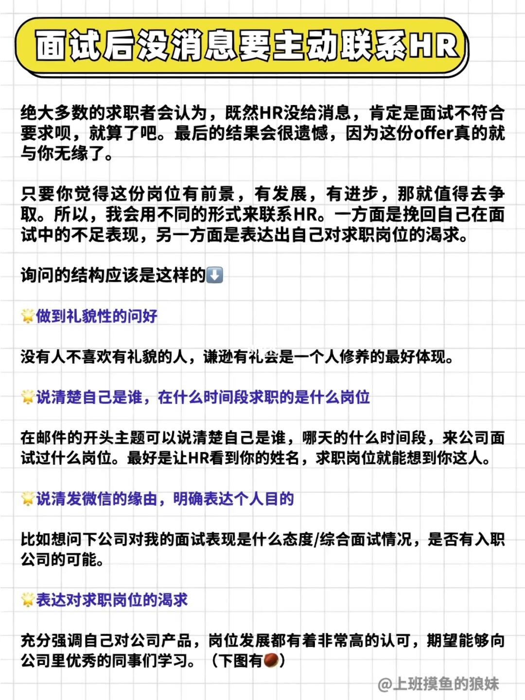 很多人觉得面试结束🔚,我只要坐着等消息就可以了,好的坏的都要接受。