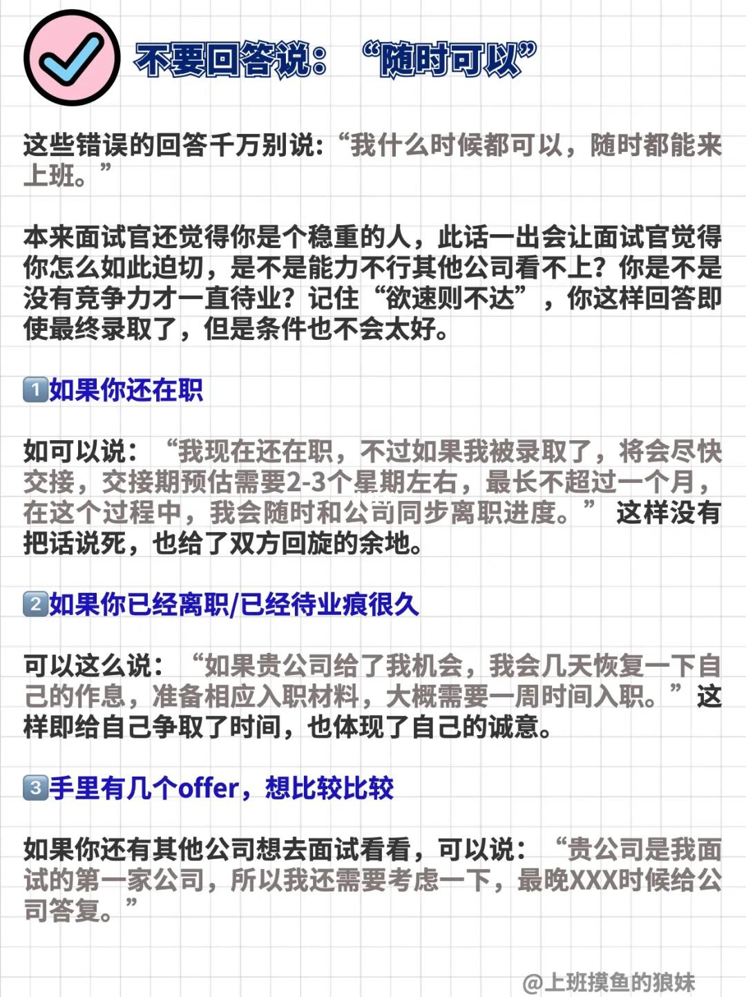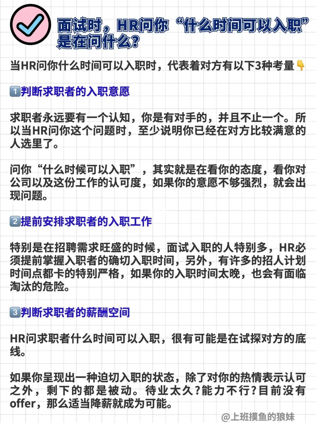1⃣️面试的时候,面试官问你什么时候想入职,除了时间还有什么深意?