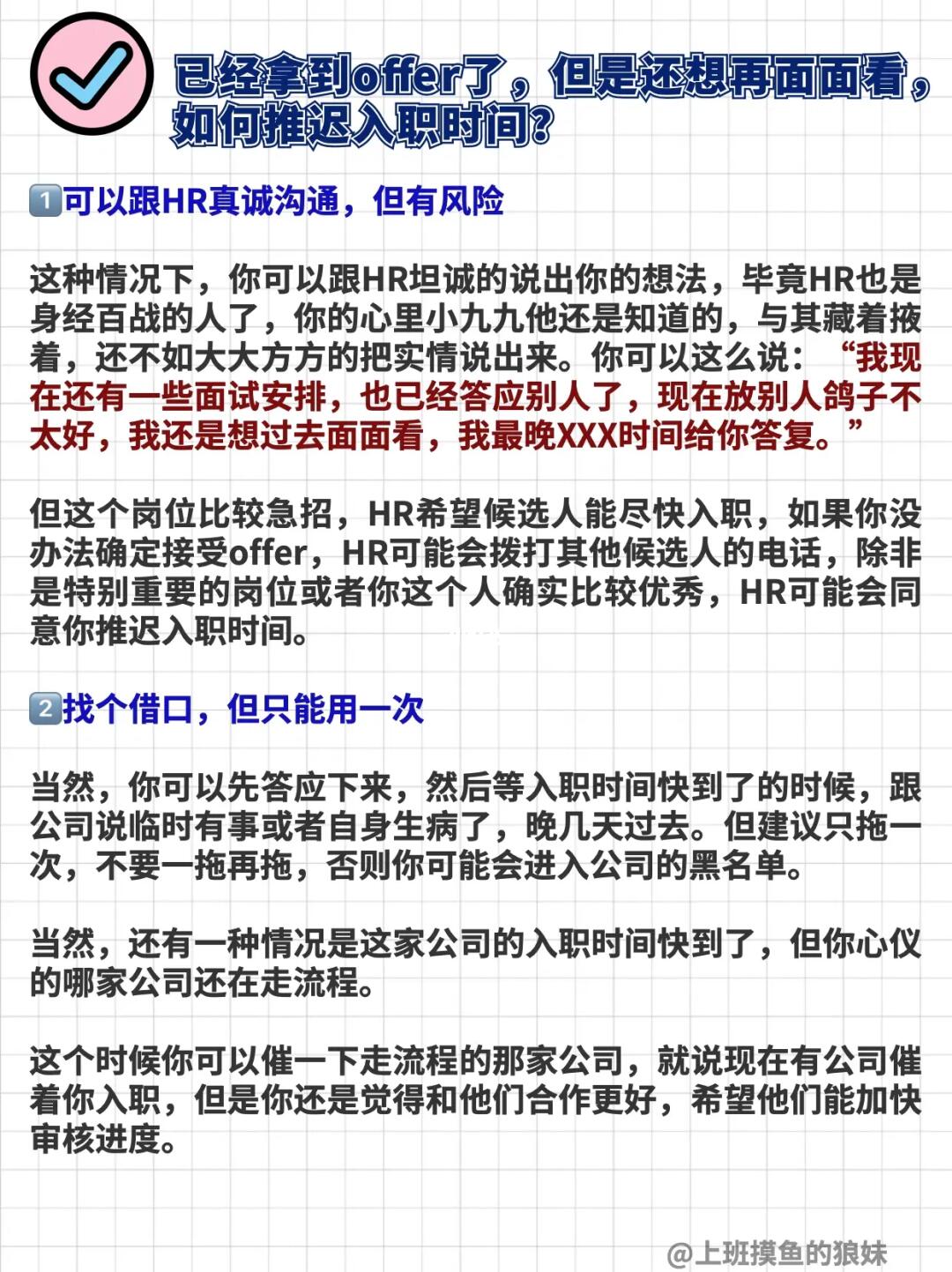 3⃣️以及拿到offer了,但是还想想面试看看,怎么推迟入职时间?
