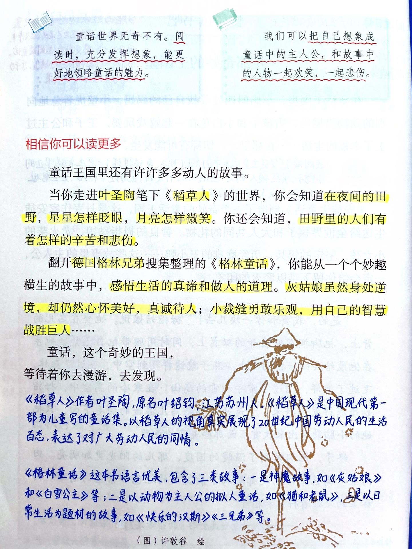 三年级上册《语文园地四》笔记。 快乐读书吧推荐阅读童话故事书《安徒生童话》《稻草人》《格林童话》