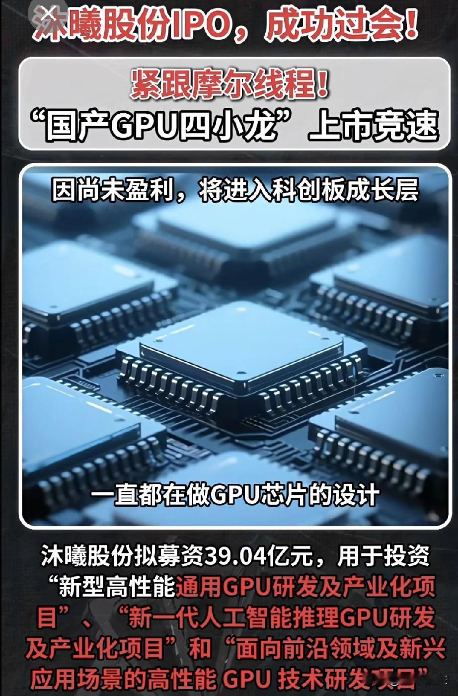 🌿艹, 就是快节奏呀! 科技还是科技! 受理到上会仅历时116天, “国产GPU第一股”刷新了科创板纪录。国产GPU龙头沐曦股份IPO成功过会! 主打产品曦云C500算力可对标英伟达A100,尽管累计亏损达30.57亿元,但获得了红杉等机构支持,此次将募资39亿元用于加码GPU研发。 国产替代加速上市?要把英伟达空出🉐国内市场填🈵?全产业链🉐自主可控加速推进,与美西方产业系统分离抗争,自建一套,备战备荒!