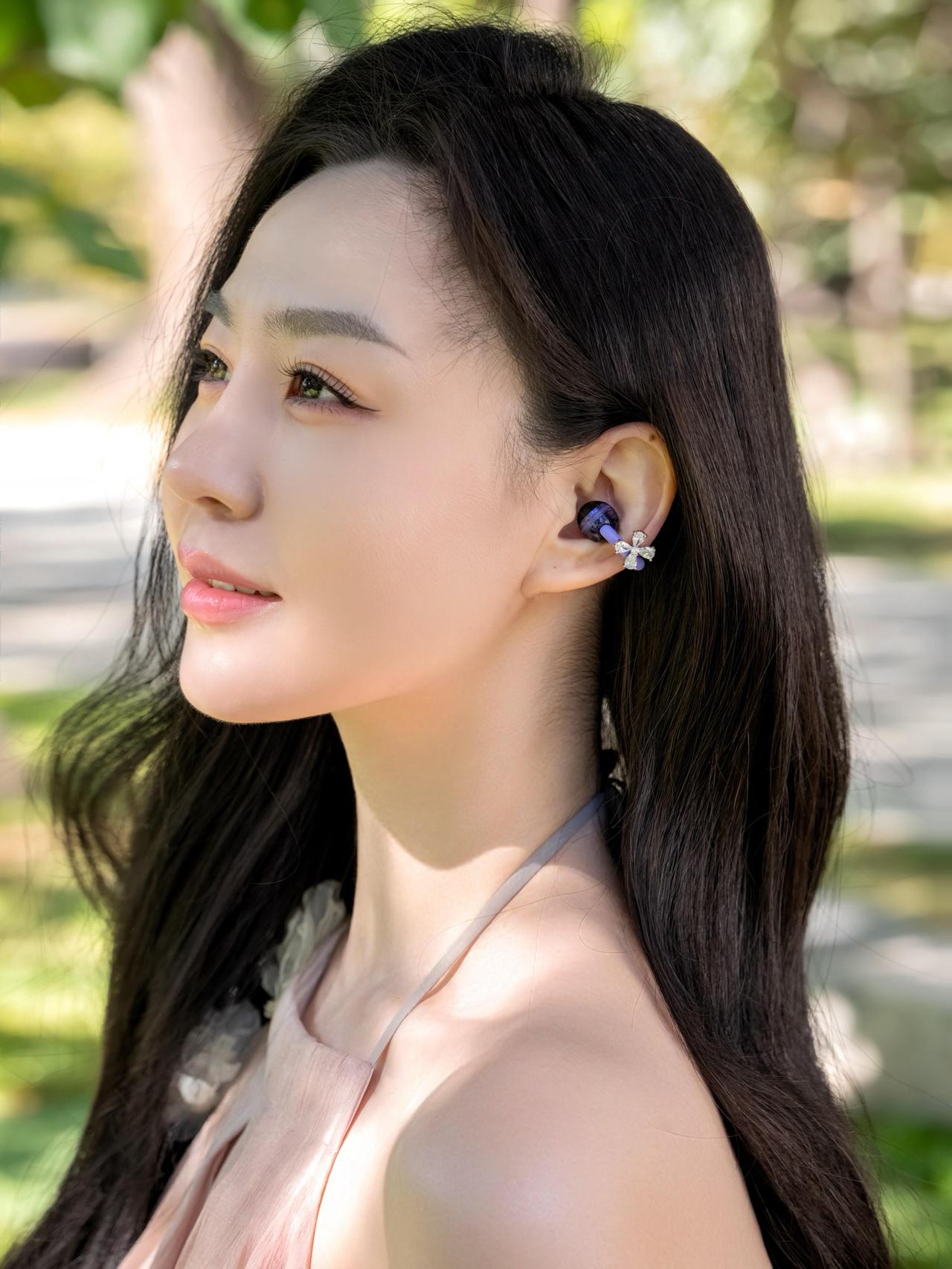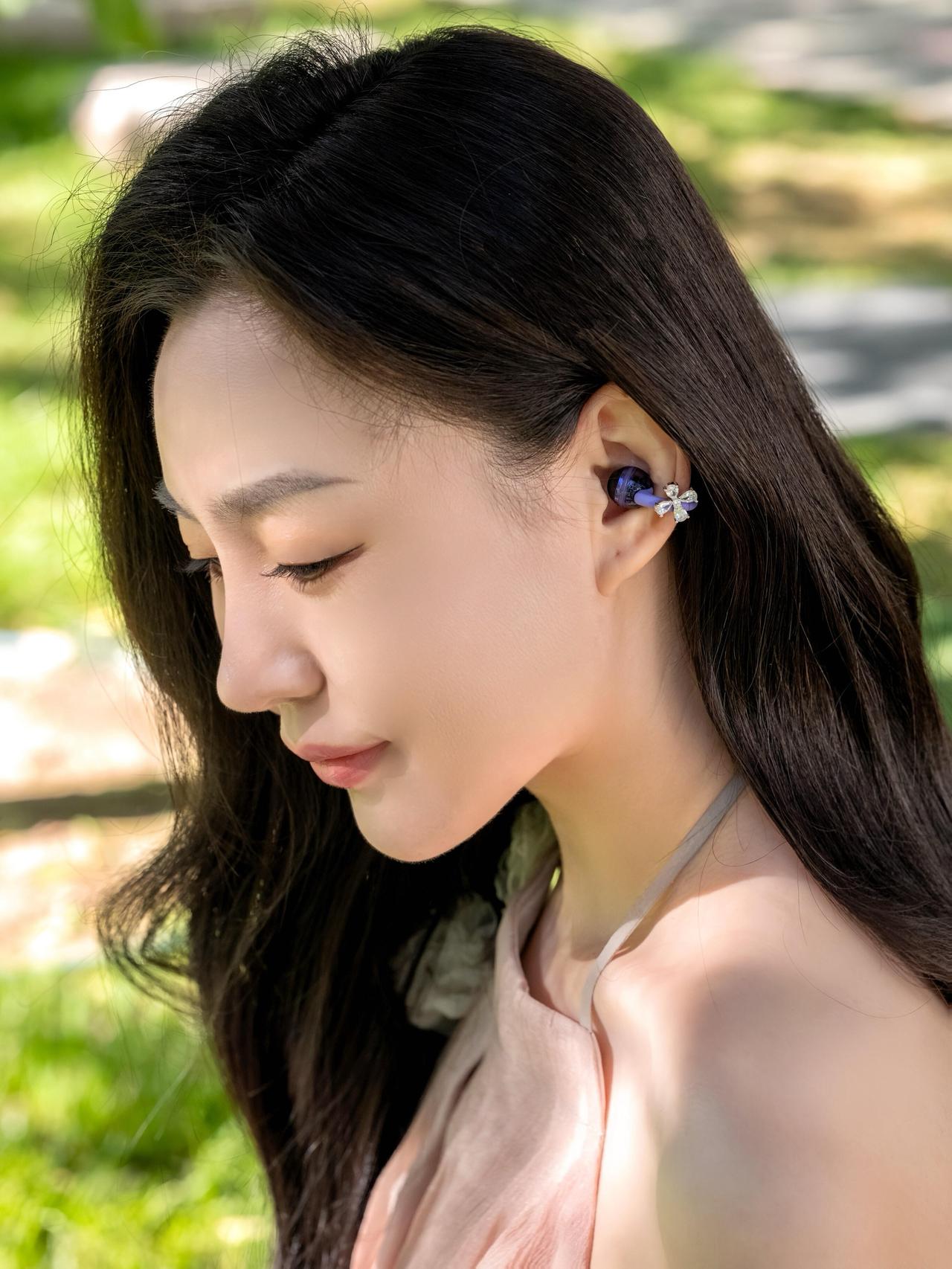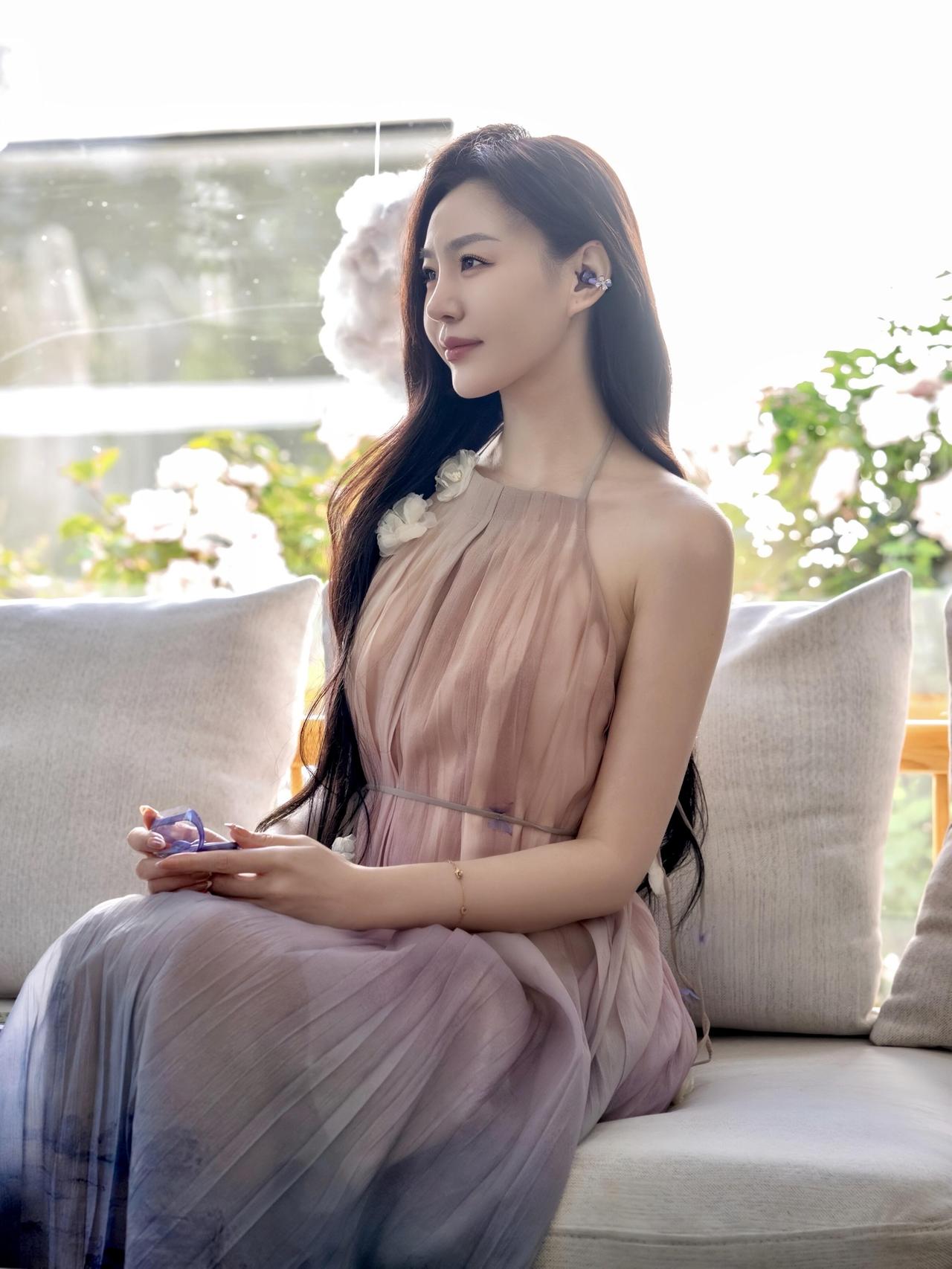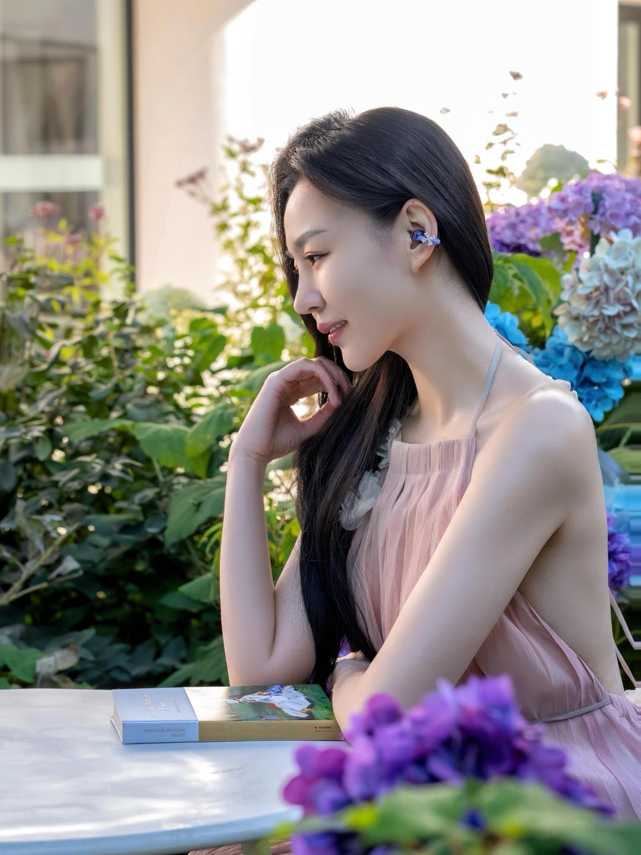 温柔粉裙少女,竹林间轻抚发丝,岁月静好。