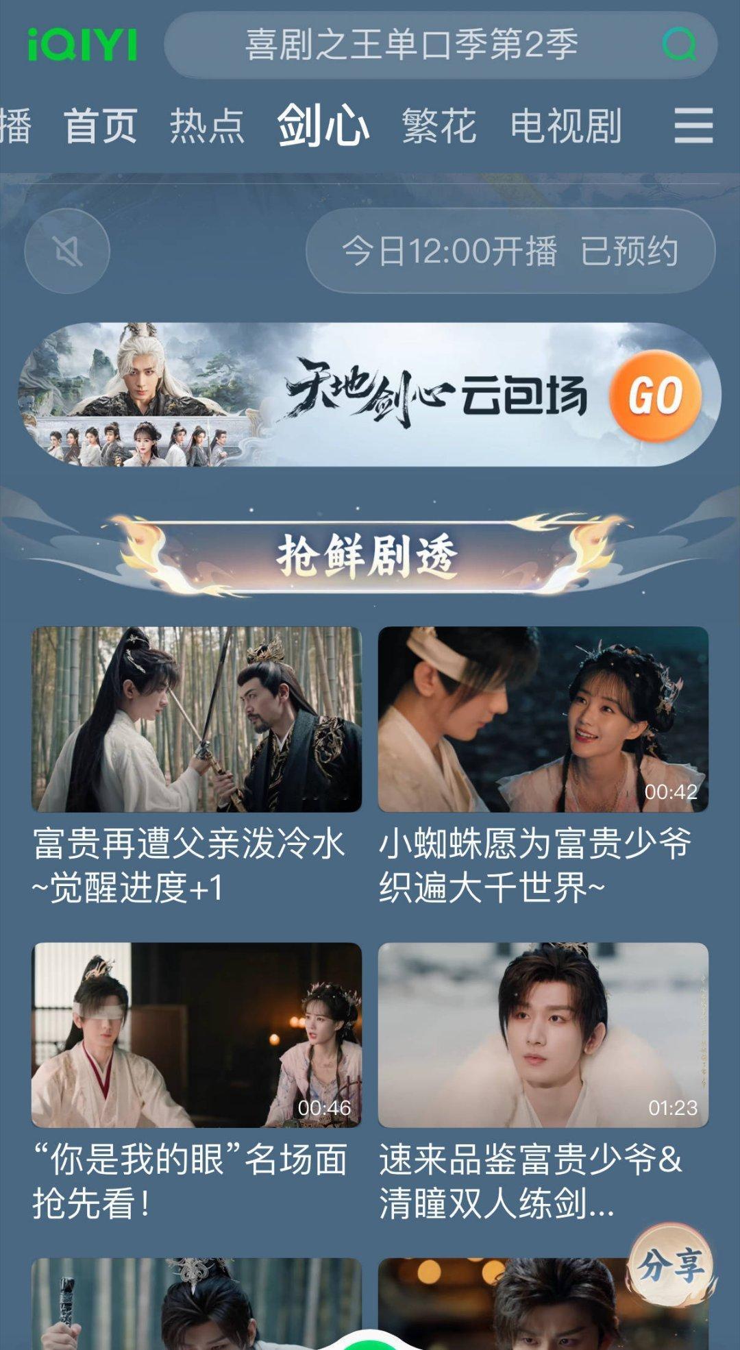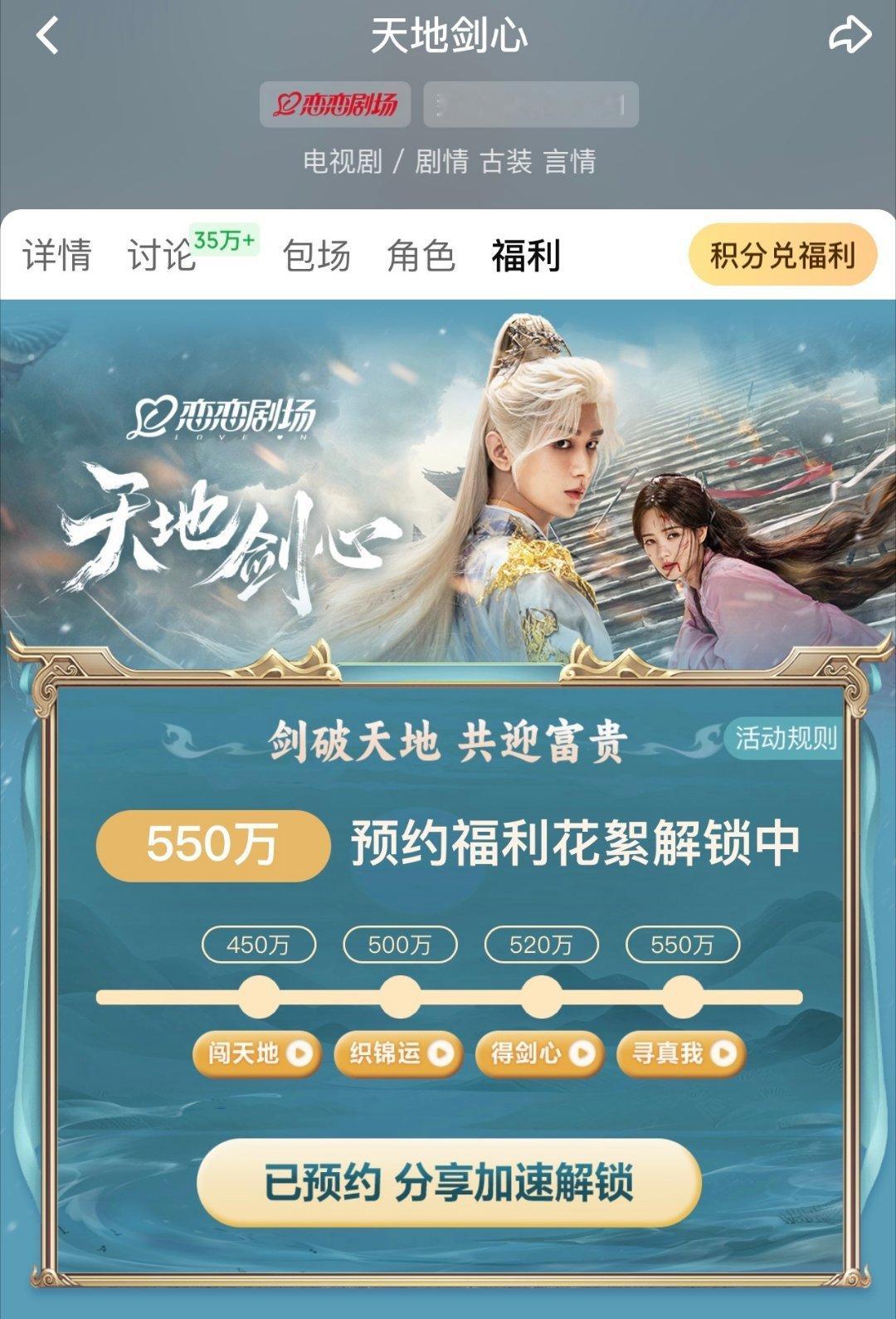成毅天地剑心预约量破550万,今天中午12:00🥝开播