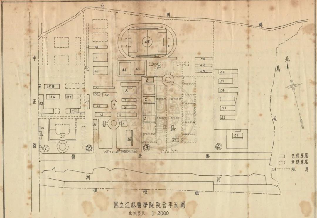 省会镇江时期的“国立江苏医学院” 现在的南京医科大学,是1957年由原民国江苏省会镇江的“国立江苏医学院”迁宁演变而来。而该校最早又叫“省立江苏医政学院”,始建于1934年。 1934年5月胡定安博士(德国柏林大学医学博士,曾任南京特别市卫生局长)受命筹划江苏医政学院,学校的位置设于江苏省会镇江北门外北固山麓,当年9月筹设完成。 学校校址面积274亩,东至乌龟山、南至城墙脚、西至中正路、北至北固路,有教室、实验室、宿舍、办公楼等各类房屋百余间。 1938年8月9日该校接上级指令后,江苏医政学院与南通学院医科(战时改编为第七重伤医院)合并,改称“国立江苏医学院”,胡定安任院长。 1945年7月底,学校开始谋划复员返回镇江。由于胜利复员初期,学院镇江原址的房屋被来往部队、省府机关大量借用,所以该校的复员直到1946年才逐步落实。1946年10月,该校师生全部回到镇江原校址。 虽然迁回原址,但由于战争破坏,许多建筑受损不堪使用。比如附属医院大楼被镇江日军改为酒精厂,结构破坏严重,只能边修缮边使用。 至1949年大撤退时,该校未整体随国民政府南迁。部分学生由于家庭或自身考虑,离校南下前往台湾。(院长胡定安赴美后再未回国,后与陈立夫在美合开养鸡场)历史老照片 历史的痕迹 P1-院长胡定安 P2-江苏医学院大门(镇江原医政路) P3-图书馆(镇江) P4-附设医院大楼(镇江) P5-寄生虫研究所(镇江) P6-高级护士职业学校 P7-国立江苏医学院平面图(镇江)