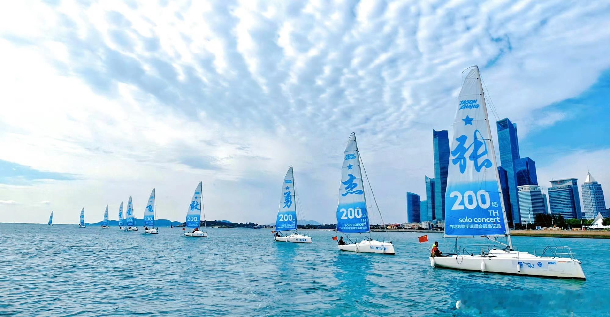 青岛也是张杰痛城了青岛变张杰痛城!第200场演唱会45艘帆船应援,21年星海同行