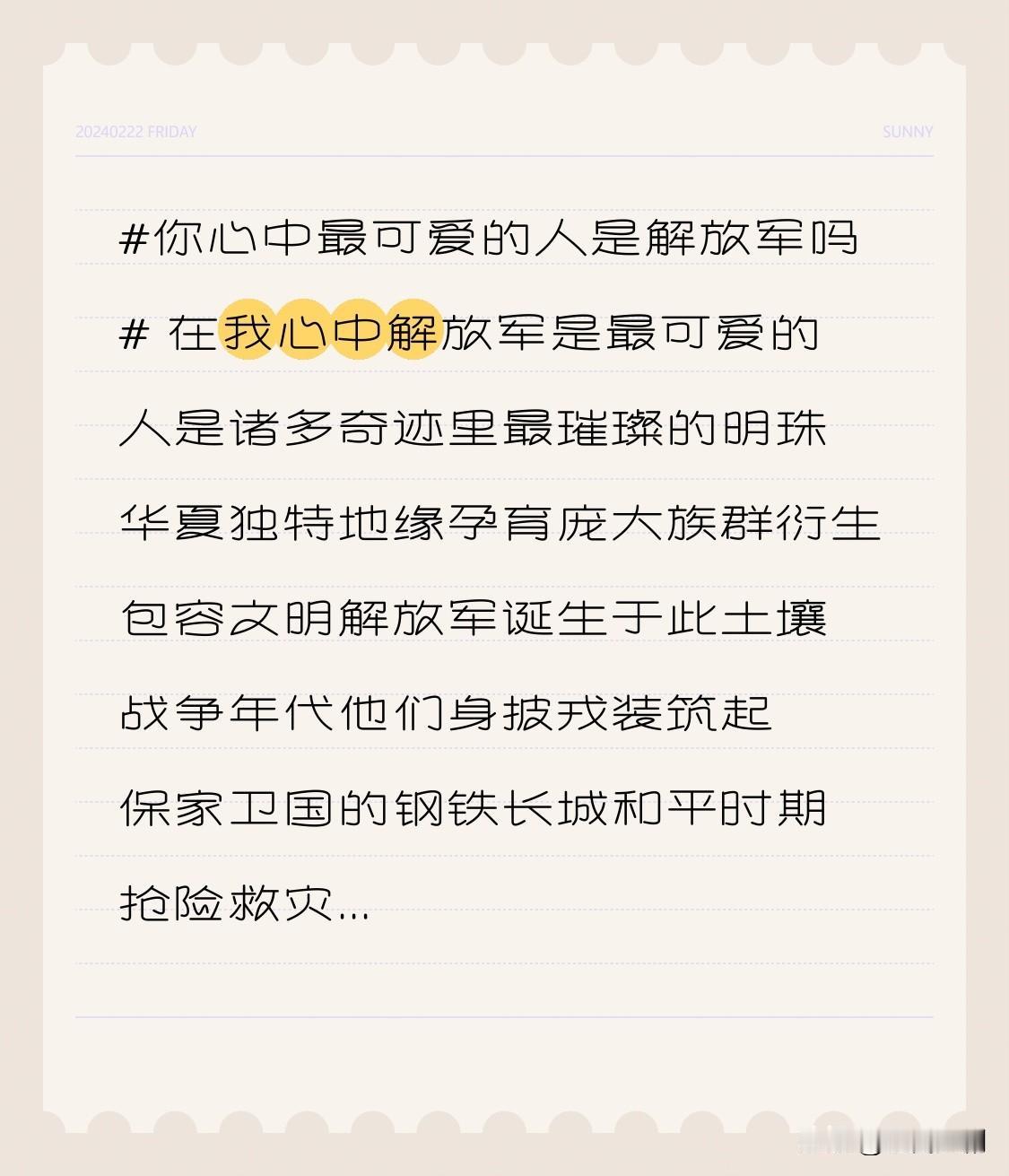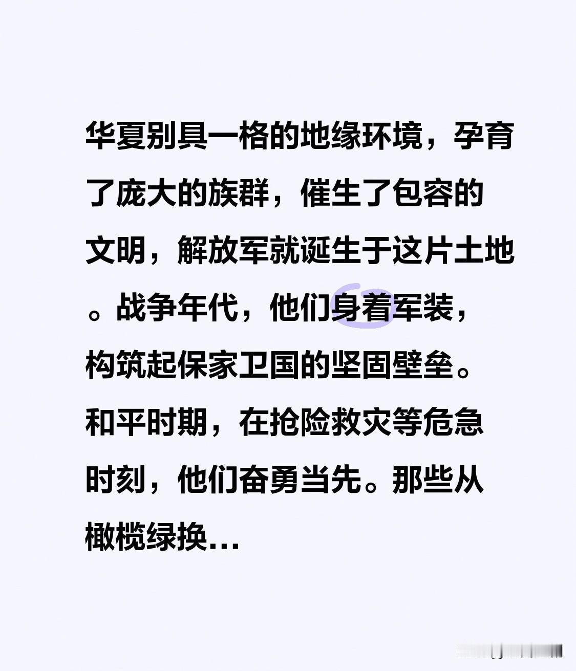 在我心里,解放军无疑是最可爱的人,是诸多奇迹中最为璀璨的明珠。 华夏别具一格的地缘环境,孕育了庞大的族群,催生了包容的文明,解放军就诞生于这片土地。 战争年代,他们身着军装,构筑起保家卫国的坚固壁垒。和平时期,在抢险救灾等危急时刻,他们奋勇当先。 那些从橄榄绿换上警服蓝的军人,制服颜色改变,忠诚与担当却始终如一。 在建军98周年之际,向这群最可爱的人致以崇高的敬意! 人民英雄军队 军人 致敬人民子弟兵