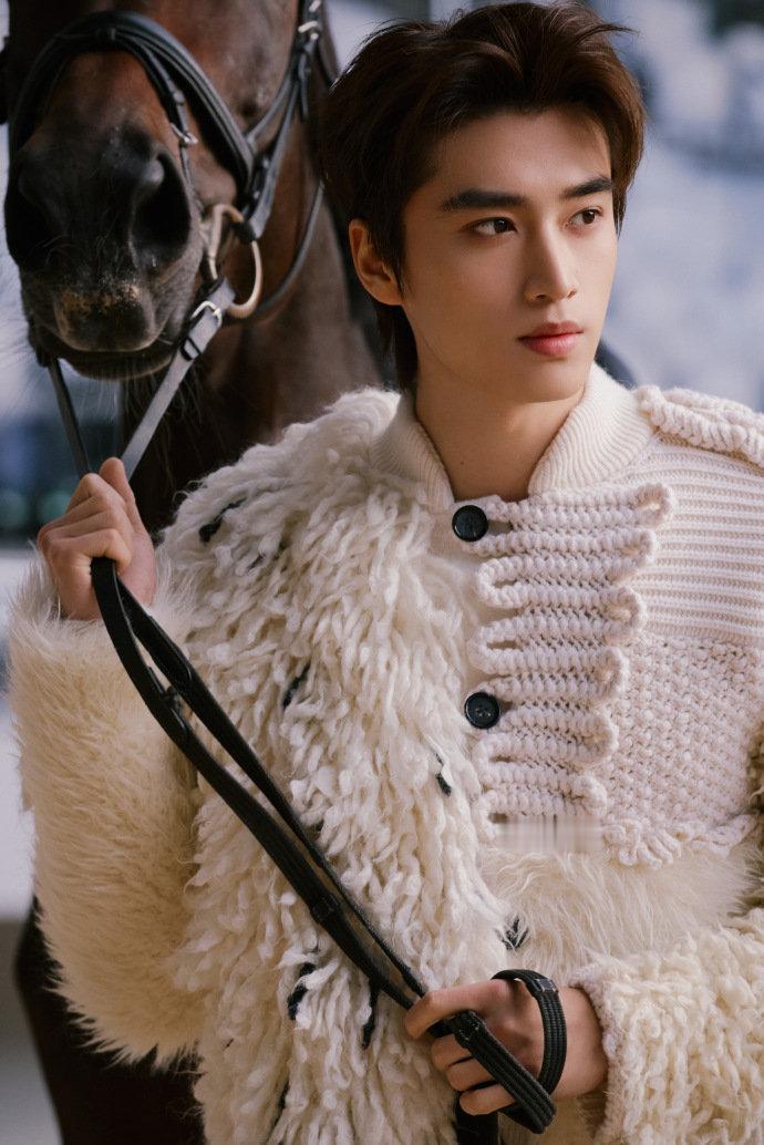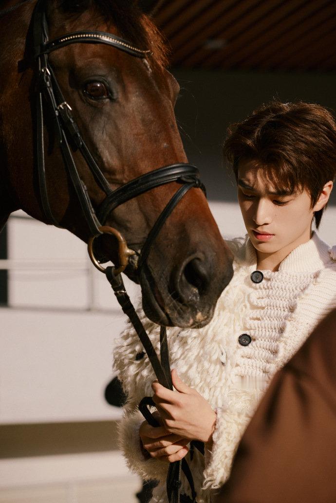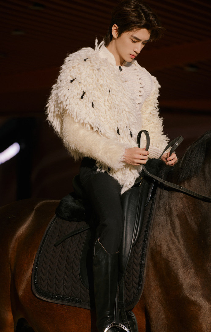 张康乐像油画里走出来的王子 谁还没被张康乐VOGUE花园的入场戳中!一身白色针织羊毛装自带优雅buff,骑着纯白马儿在花海里穿行,单手控缰、腰板笔直的样子,简直是童话骑士照进现实,夕阳洒在他身上的画面,每一帧都精致得像油画,“踏光而来的白马王子”这title给他太合适了!
