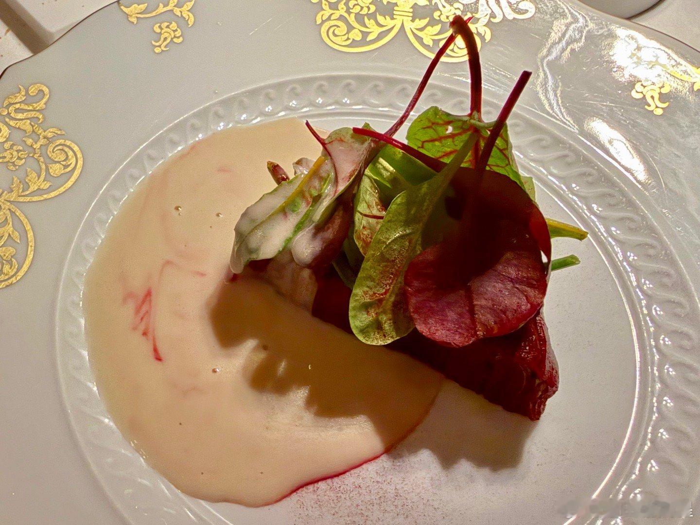 首先是三个好吃的前点,香甜可口,苹果偏酸一点。图2是前点甜菜冰激凌,有点烤香的美味,酸甜可口