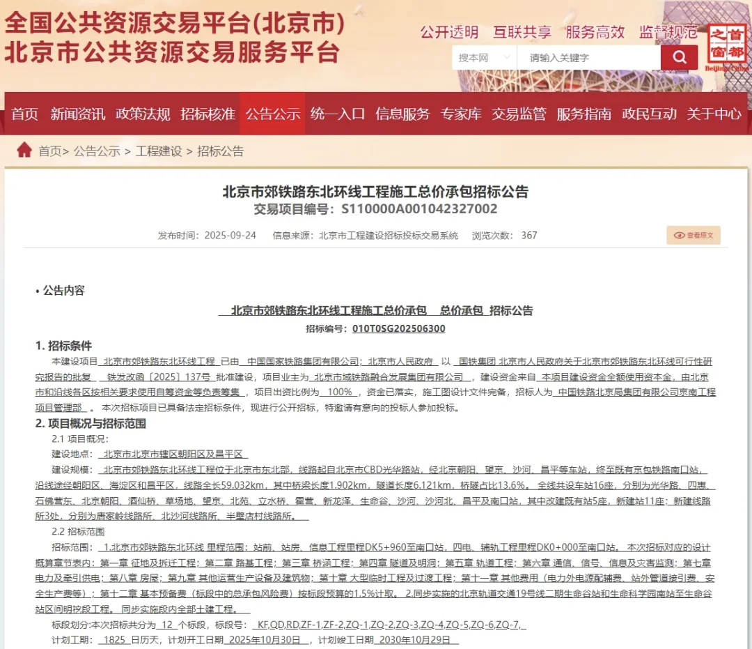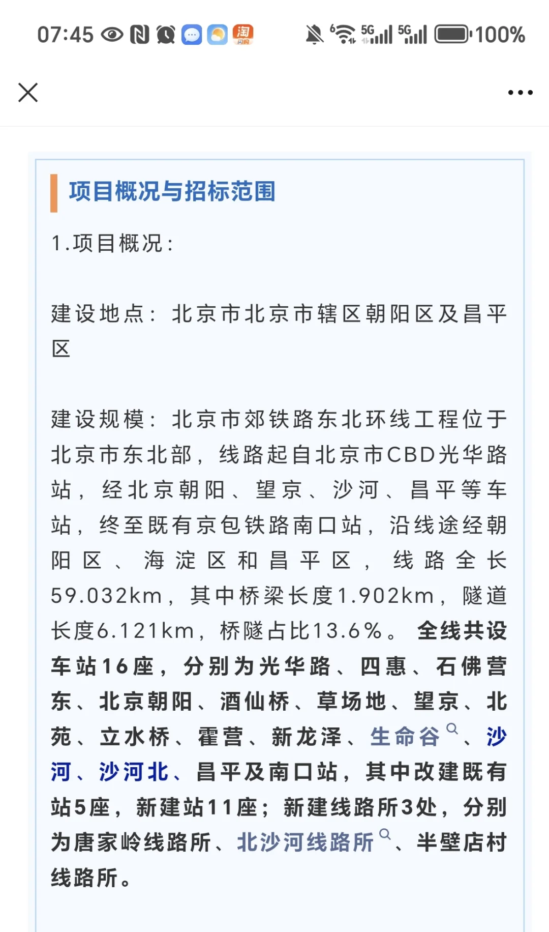 东北环线,终于要来了! 2025年10月20日招标平台公布了北京市郊铁路东北环线工程施工总价承包和施工监理中标候选人公示。 这意味着,东北环线,马上进入开工阶段。从资料显示,2025年10月30开工,2030年10月29日完工。总工期5年。千呼万唤始出来,这条线,对沙河沿线居民真的太重要了!