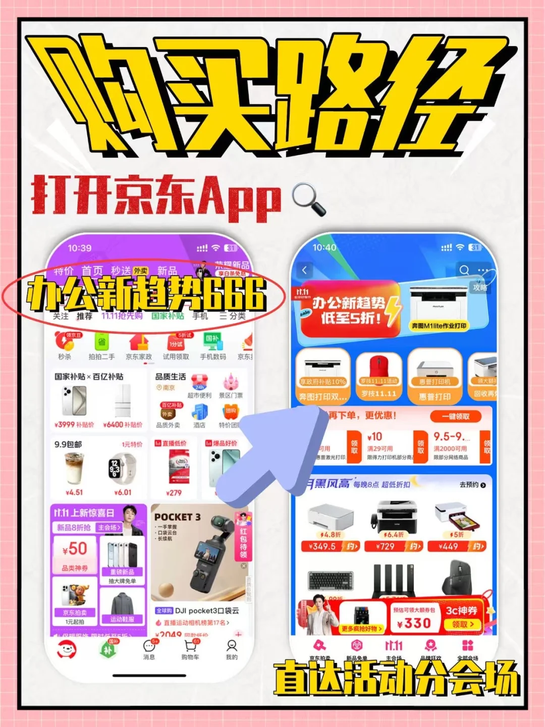 💬💬潮人买东西,好看好用还得会省钱!11.11买打印机,一定要冲京东!搜【办公新趋势666】进会场,爆款直降低至5折,算下来超划算,比平时买省出大几百耶。