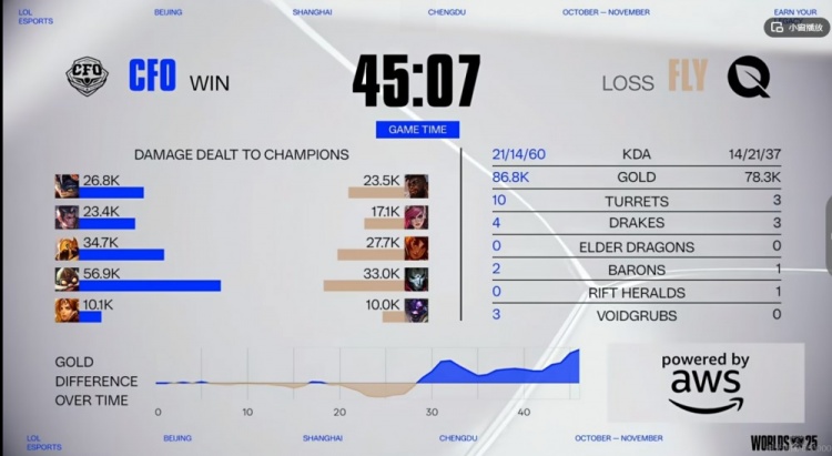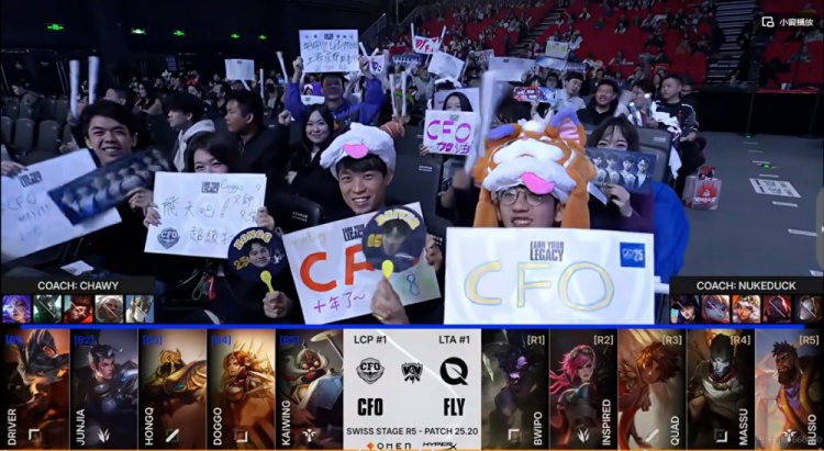 直播吧10月25日讯2025年英雄联盟世界赛来到瑞士轮最后一天,2-2组的生死战第一场是CFO对阵FLY!