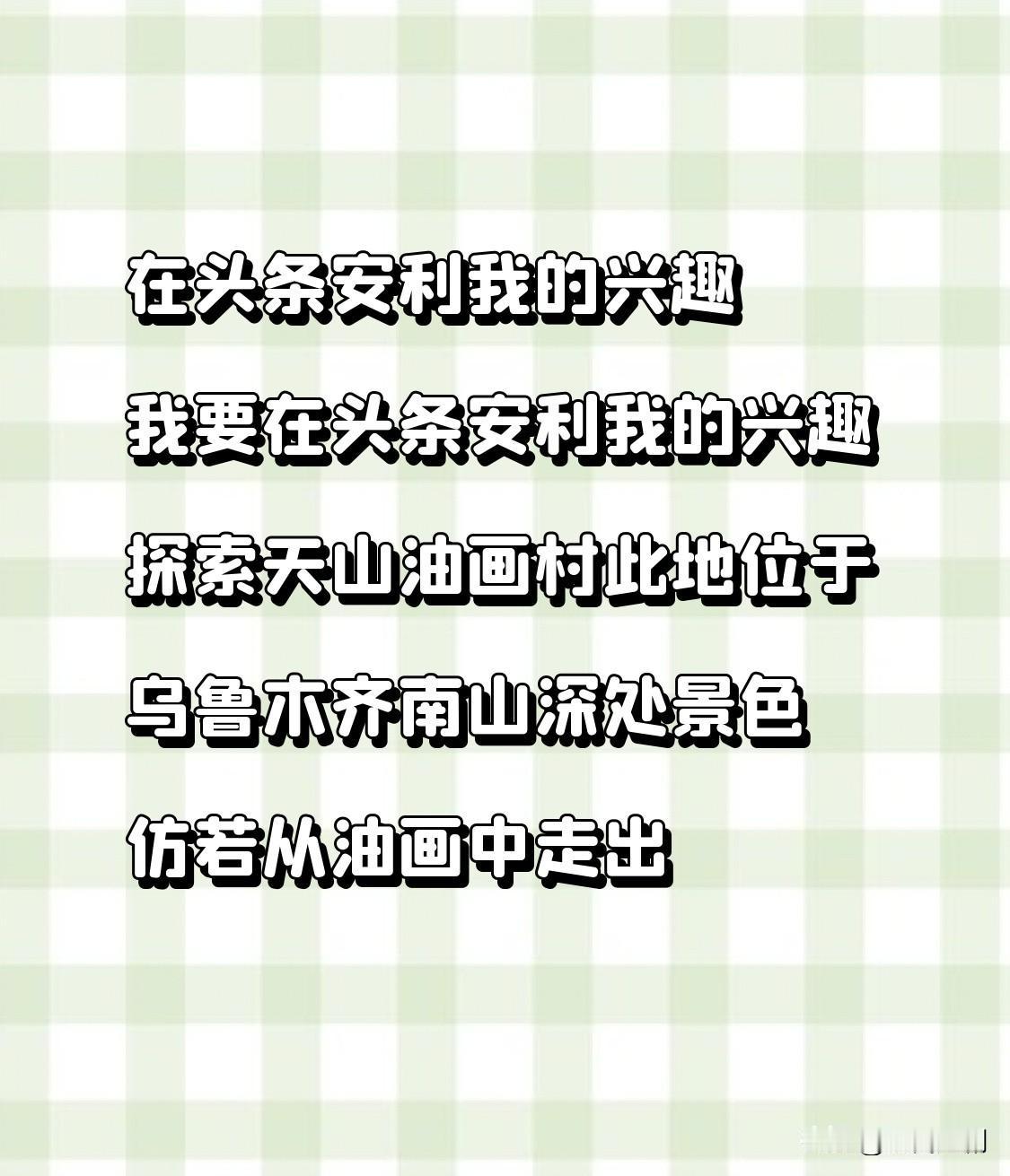 在头条安利我的兴趣 我要在头条狠狠安利我的兴趣——探索天山油画村!它藏在乌鲁木齐南山深处,那景色就像从油画里走出来的一样,绝美无双。 盛夏时节去那更棒,这里还有“杏花村”的美称,乌鲁木齐县甘沟乡天山村的千亩杏林里,金黄的杏子挂满枝头。林间果香四溢,游客穿梭其中采摘,乐趣十足。这里的杏子“个头大、色泽好”,口感没得说。天山村地处逆温带,光照足、温差大,杏子成熟晚,养分和糖分积累充分。这么美的地方和美味的杏子,谁能不爱?