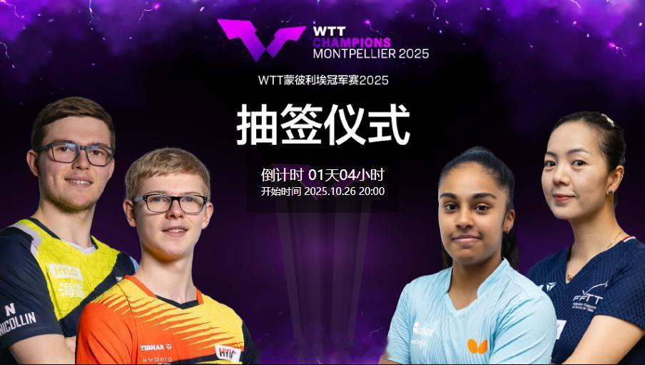 蒙彼利埃站抽签仪式变化!由于孙颖莎,王楚钦等主力退出。 10月26日20时的抽签