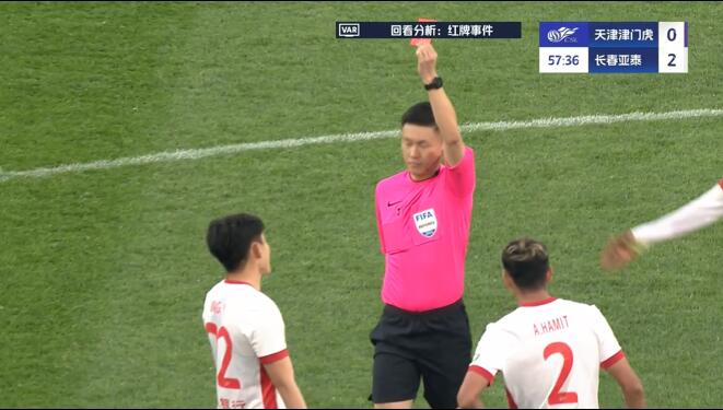 王禹放铲踢到哈达斯小腿,主裁将其直红罚下!亚泰十人作战!