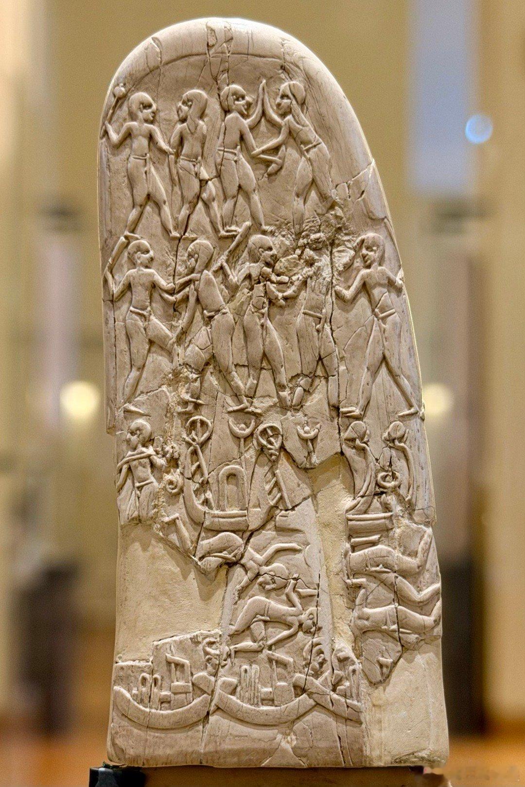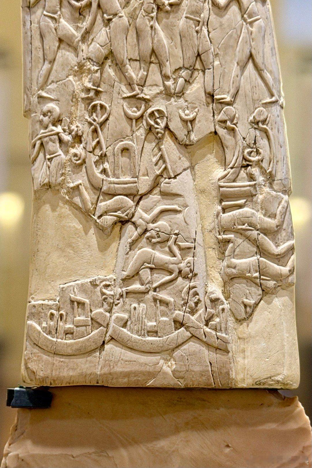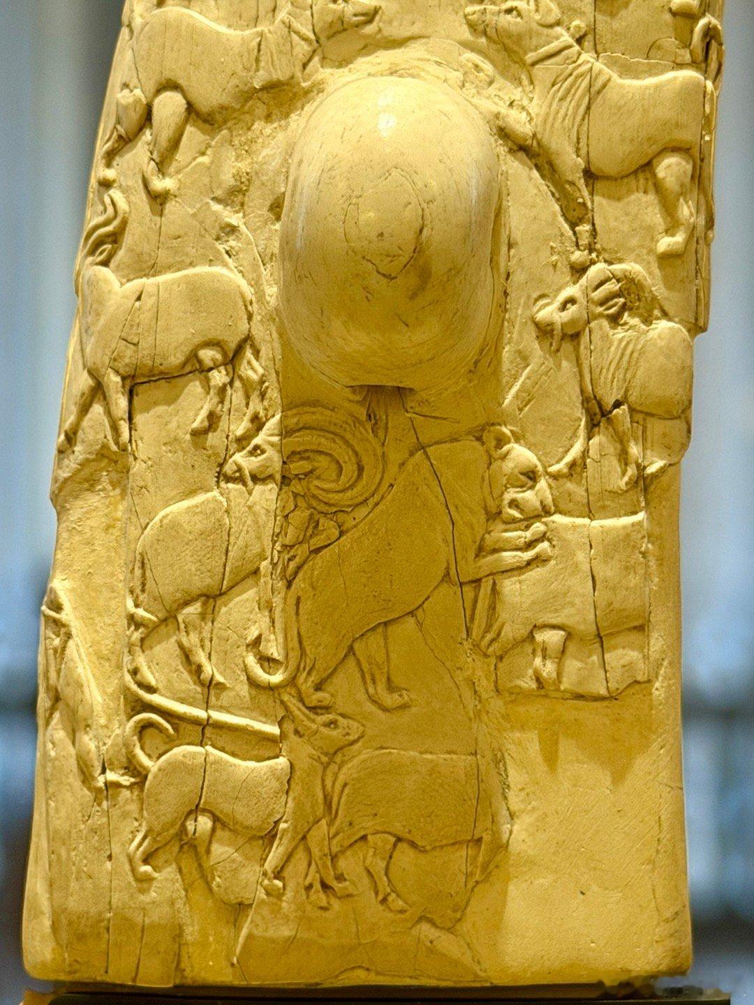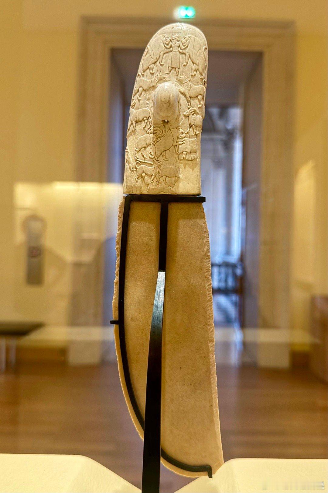 象牙刀柄的另一面雕刻着美索不达米亚风格的动物形象。最上面有一位身着美索不达米亚服饰的人物在掐住两只猛狮的脖子。有专家认为这个人是古迦南宗教里的众神之父埃尔。也可能是太阳神乌图的儿子,苏美尔乌鲁克第一王朝的国王美什千加舍尔。这把石刀从图像上证明了上古时期的埃及和美索不达米亚文明有过深远的联系,两河的文明传入埃及,对埃及文明的早期起源有巨大的影响。所以这把刀也是整个欧洲最重要的古埃及文物之一。