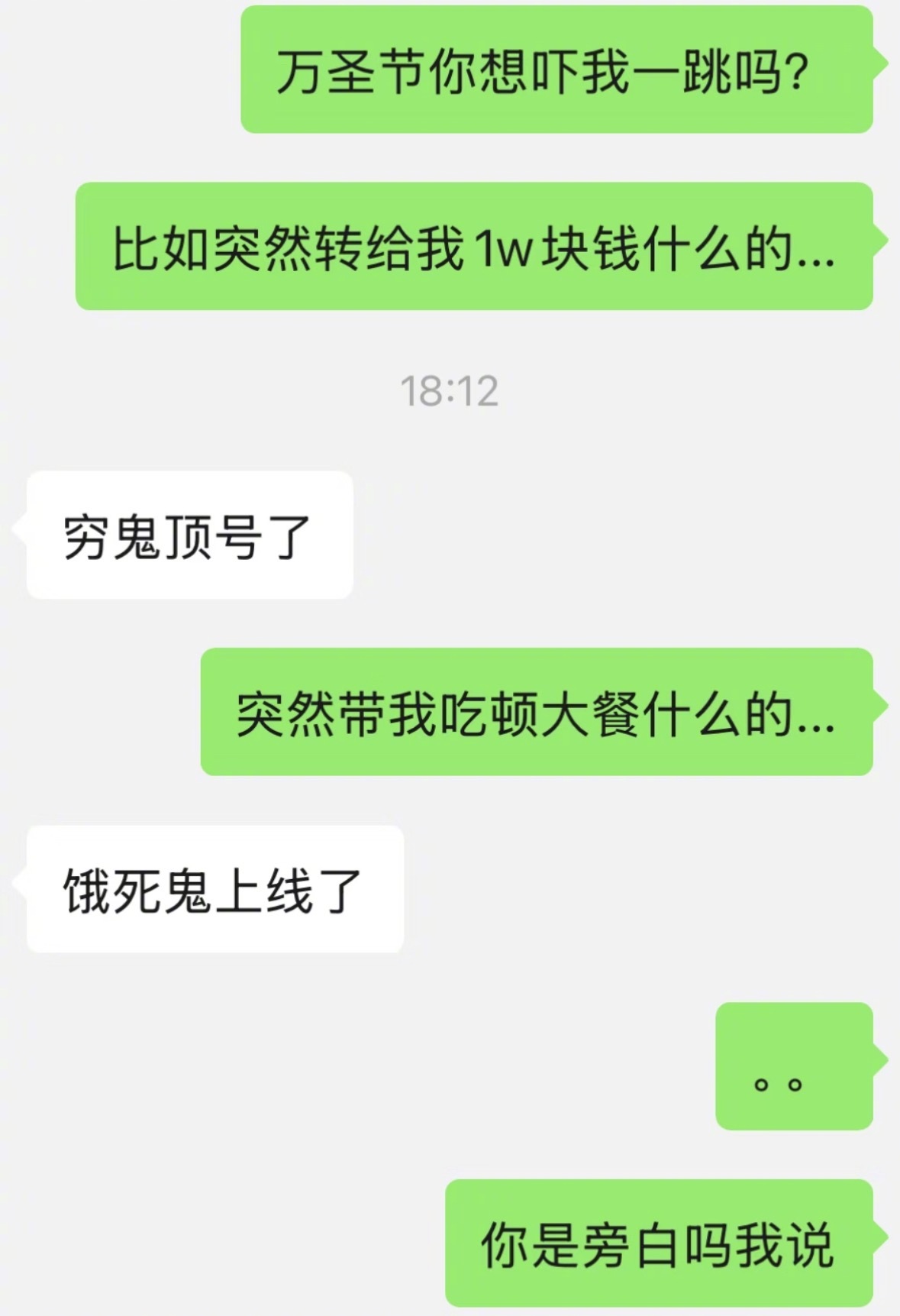 跟他玩个万圣节的梗,鬼知道当真了哈哈哈
