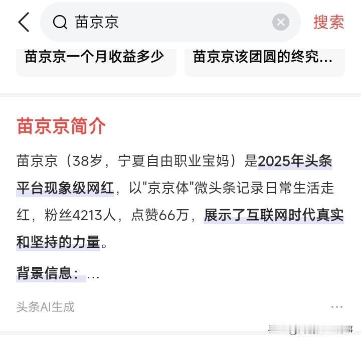 说实话,你觉得苗京京还会火多久呢? 正所谓,古语有云,盛极必衰!有些人有些事在