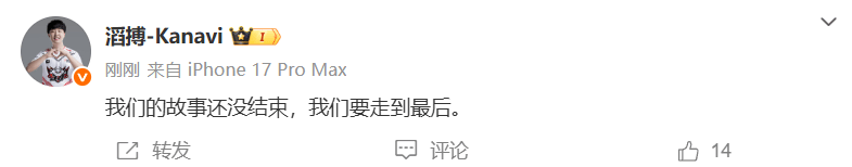 Kanavi赛后发文:我们的故事还没结束,我们要走到最后