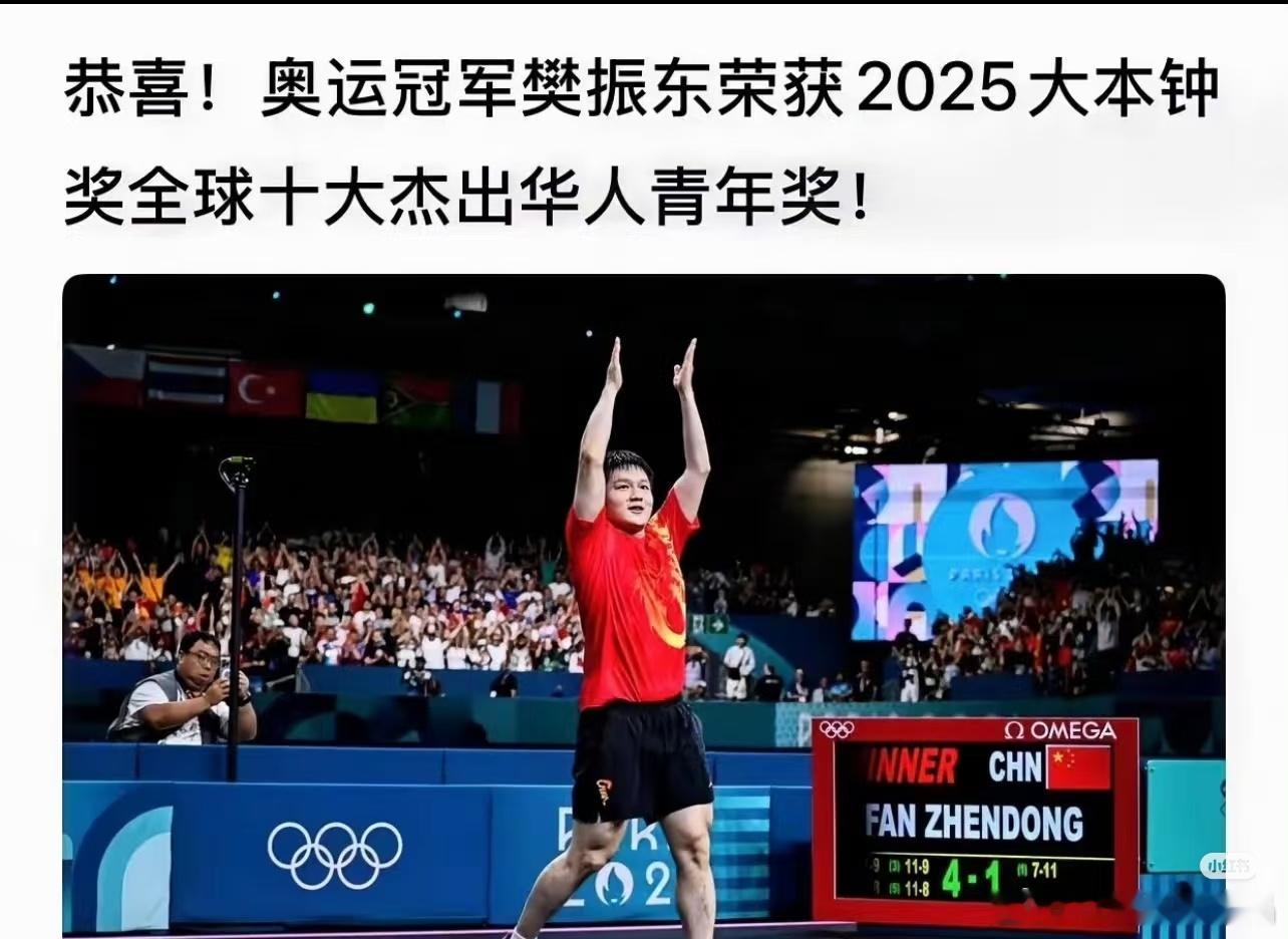 恭喜恭喜!樊振东获得2025年大本钟奖!
