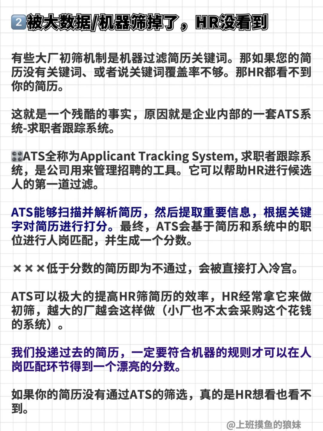 因为大公司都是用机器或者大数据刷人的,我们投递过去的简历,一定要符合机器的规则才可以在人岗匹配环节得到一个漂亮的分数🙌