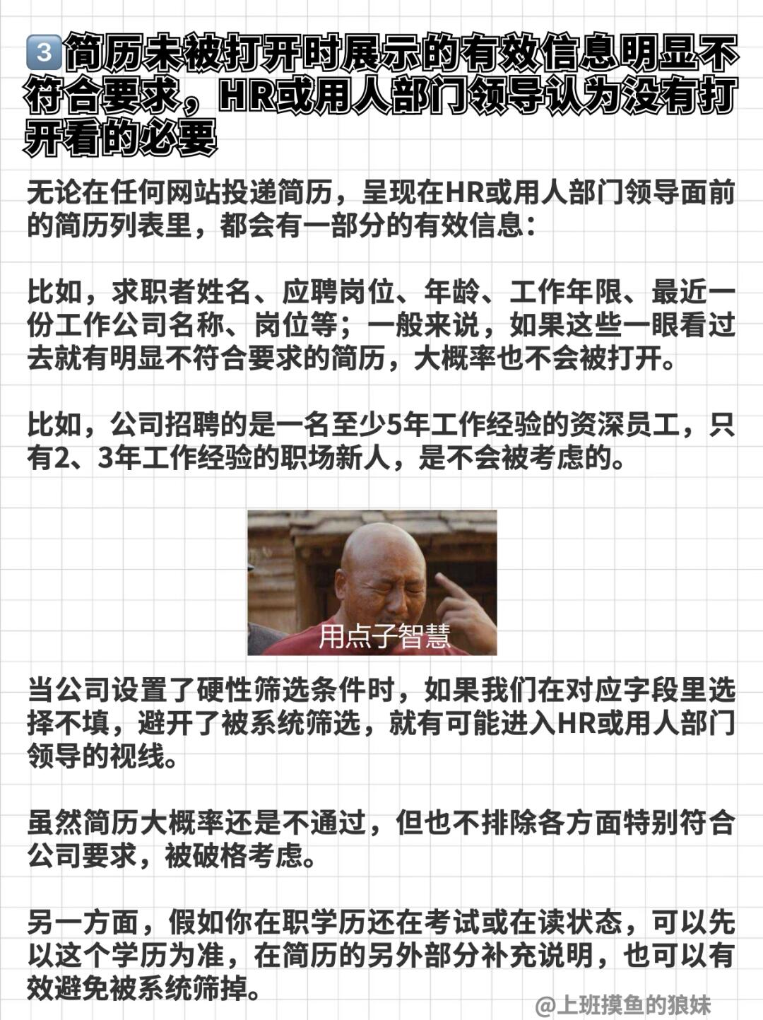 3⃣️简历未被打开时展示的有效信息明显不符合要求,HR或用人部门领导认为没有打开看的必要