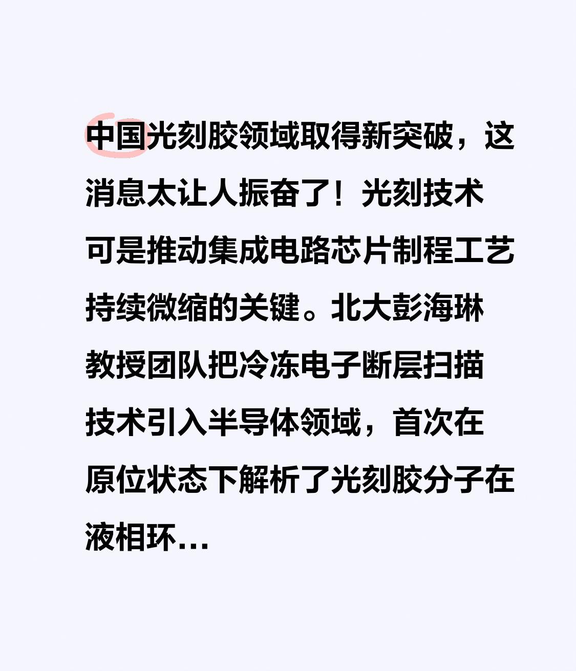 中国光刻胶领域取得新突破,这消息太让人振奋了!光刻技术可是推动集成电路芯片制程工