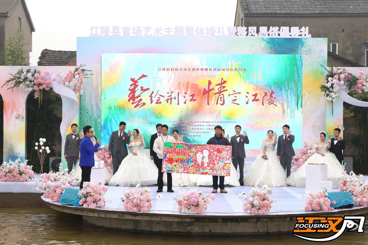 10月25日下午,“艺绘荆江·情定江陵”集体婚礼活动在江陵陈泽鲲长河艺术馆举行。本次活动由共青团江陵县委联合江陵县委组织部、县委宣传部、县总工会、县妇联、白马寺镇主办,荆州市传媒集团承办。