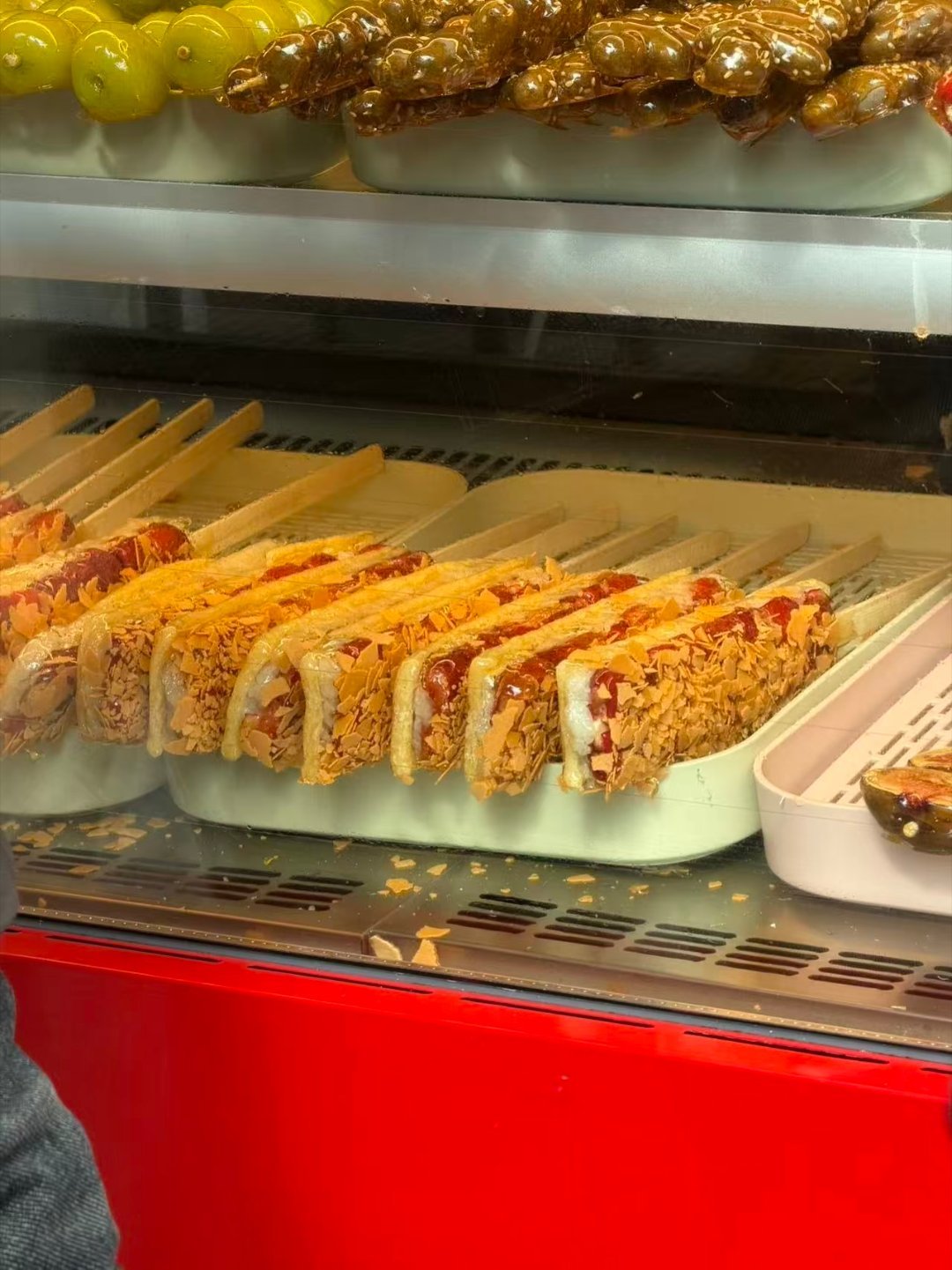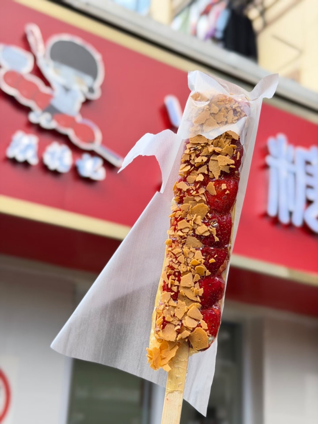 南京迈皋桥地铁站附近的“草莓熊糖葫芦”摊最近火得离谱,有人为了吃上一串奶皮子糖葫